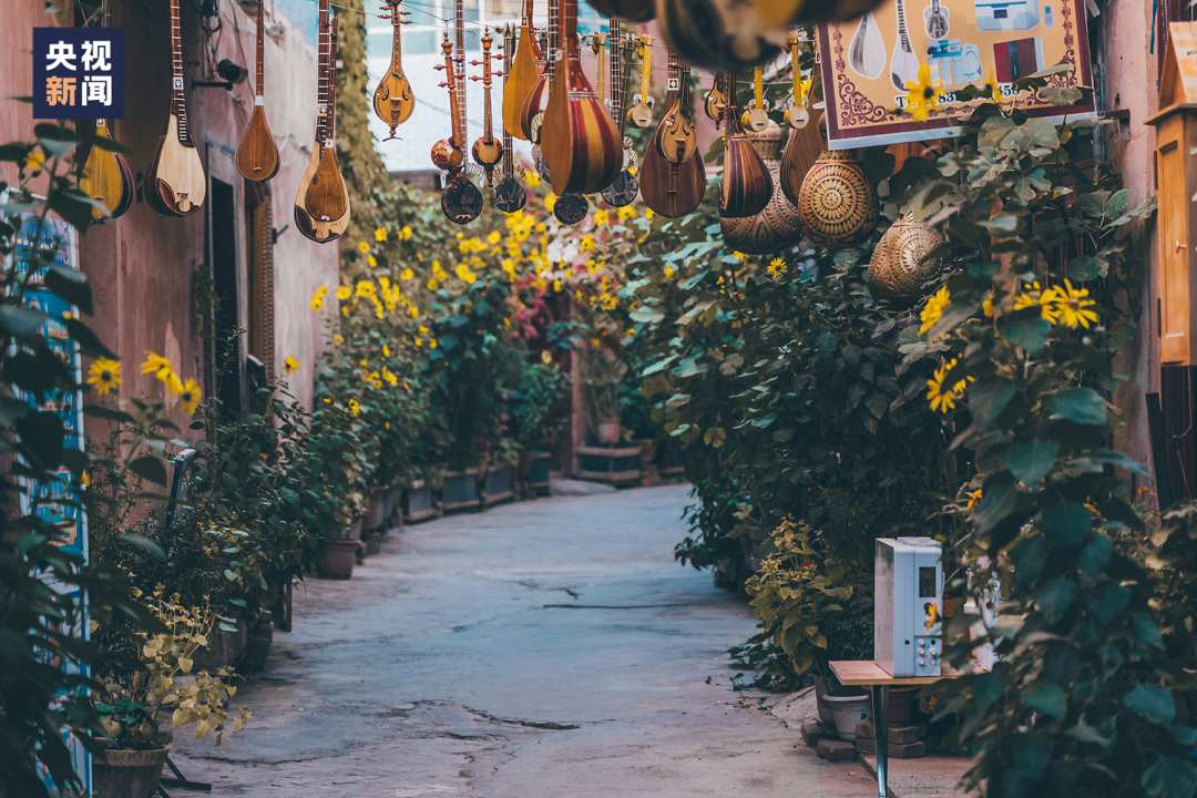 喀什古城有典型的古民居,屋舍充满了生活情趣。庭院不论大小,夏季都无一例外地被绿叶🍃和鲜花🌺围绕,仿佛闯入童话世界。