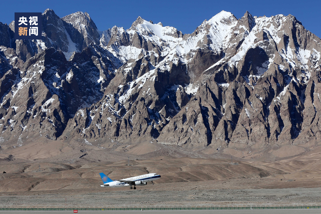 △一架客机从塔什库尔干红其拉甫机场起飞