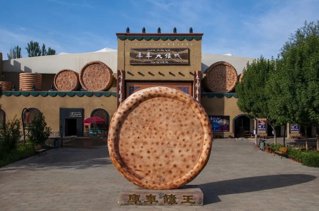 如果想了解馕的历史,库车大馕城是最好的选择。在这里可以买到比轮胎都大的馕,库车馕因大、薄、香、脆,享誉全国。
