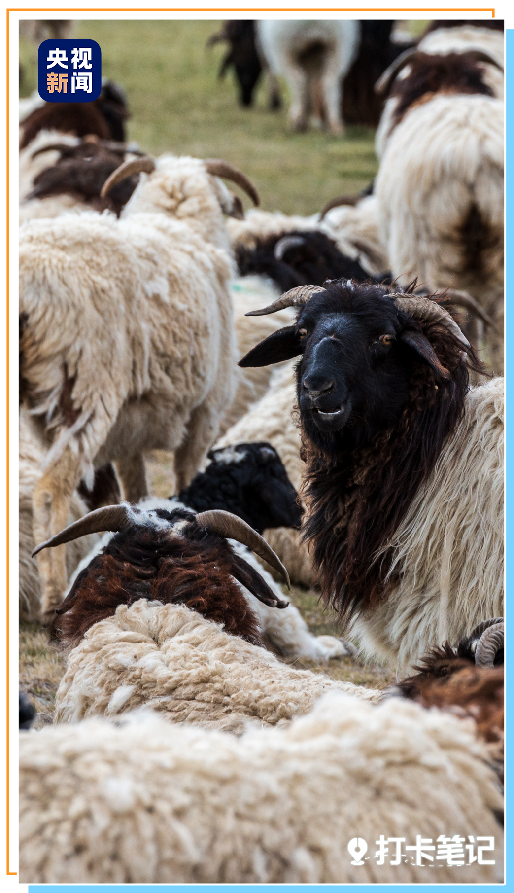 更有趣的是,这里的羊也长得不一样。生活在这里的巴音布鲁克黑头羊,它们的头颈部是黑色,其余地方是白色,看上去仿佛是穿着礼服的绅士。