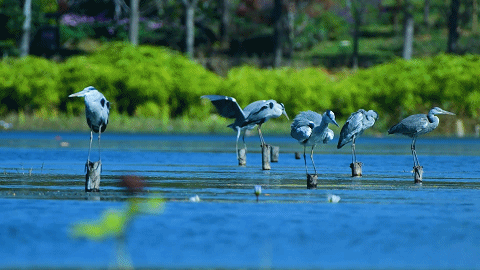 在这里可以和红嘴鸥互动,无论是站在岸边还是乘船行进,只要你伸手投喂,红嘴鸥就会成群向你飞来。