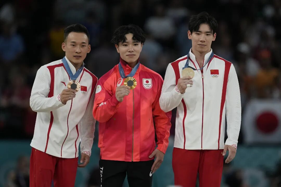 体操男子个人全能决赛中,中国选手张博恒、肖若腾分别获得银牌、铜牌,这也是奥运体操赛场上第一次有两位中国男选手同时站上全能领奖台。