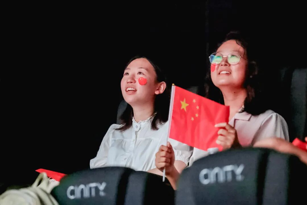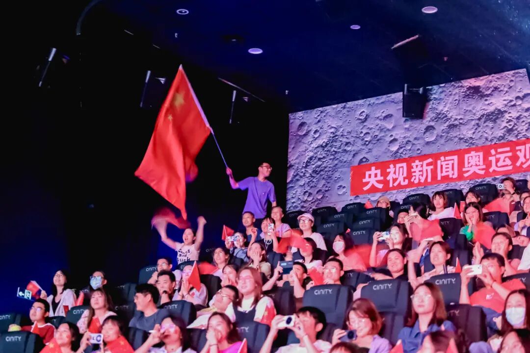 △@打嗝大王^^ 的线下观赛拍摄的打卡照(左),与影院看奥运打卡照(右)