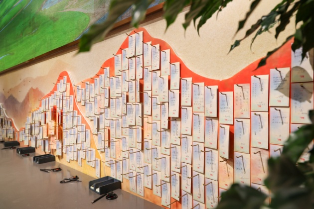 尾厅,一面留言墙醒目而温馨