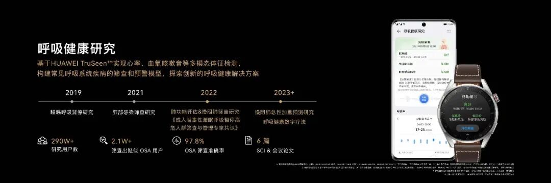 一些专业医疗机构已经在开展基于穿戴设备的居家风险筛查,并取得了一些进展。例如301医院和华中科技大学附属同济医院联合在呼吸健康领域发起研究,通过华为手表搜集心率变异性、呼吸率、血氧、咳嗽音等生理参数,进行肺部感染风险筛查,了解肺部健康状况。因此,日常生活中要经常佩戴,对基线的情况测定会比较充分,出现异常时能够更及时的去反映。
