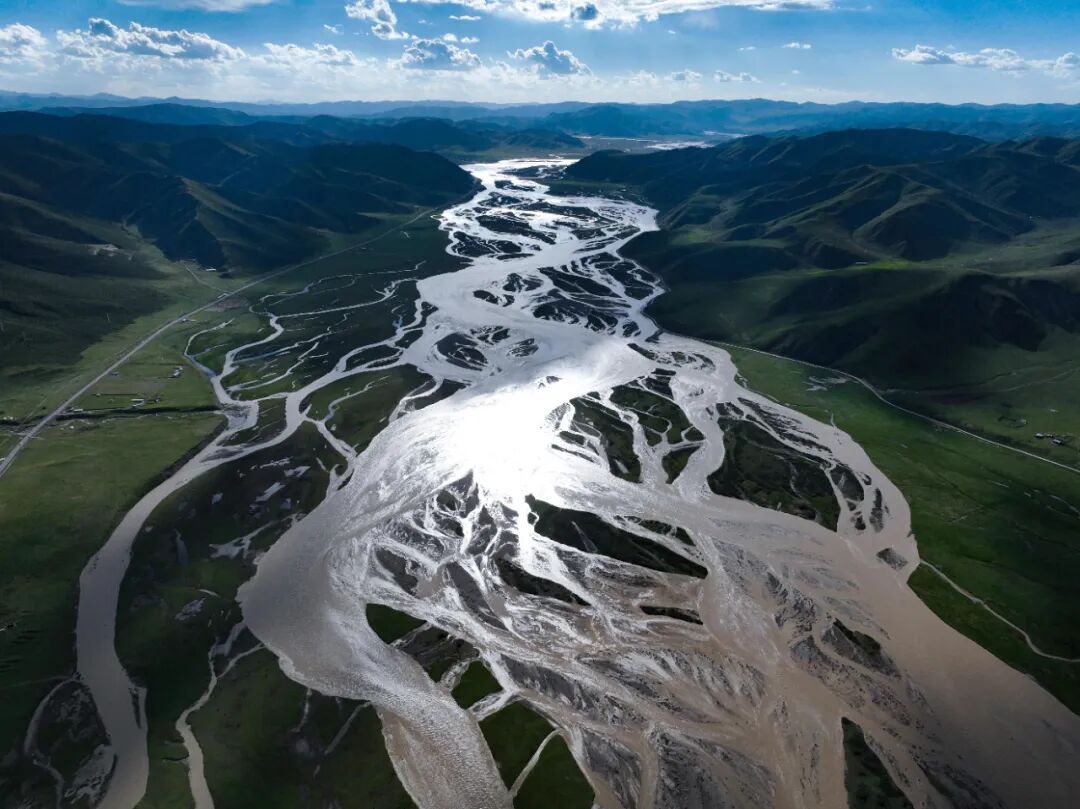 在青海省果洛藏族自治州达日县境内拍摄的黄河(7月31日摄,无人机照片)。新华社记者 张龙 摄