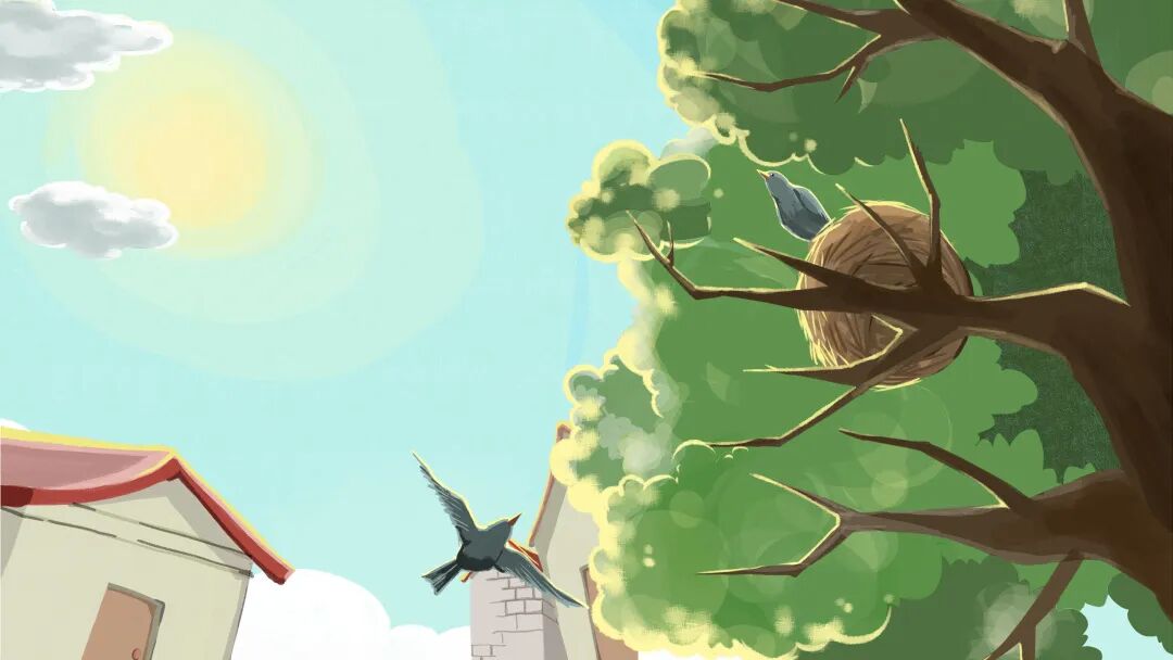 在幼童的世界里,总是对陌生的事物充满好奇和遐想。望着父母经常登着楼梯上到房顶,还有一群小鸟一天到晚在房脊上蹦来跳去。
