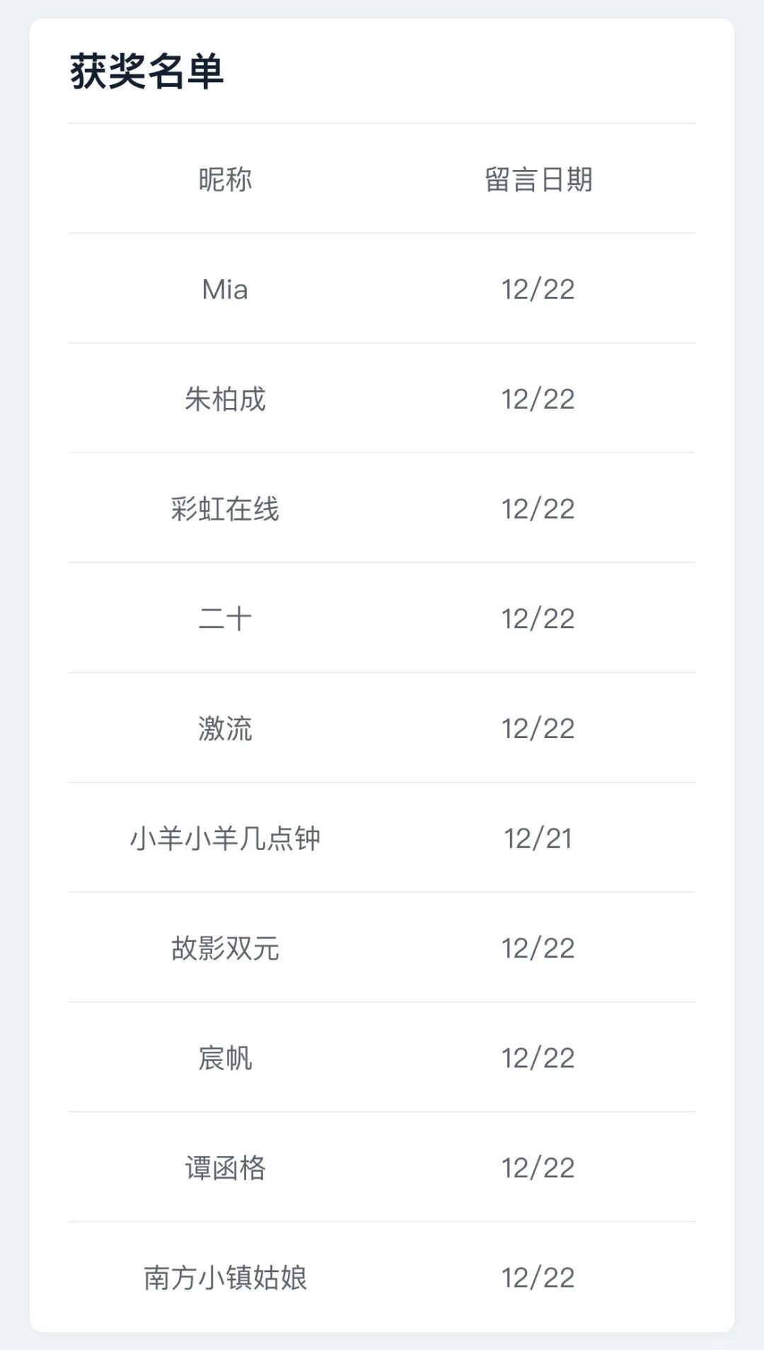 截至2023年1月9日14:00,小程序留言点赞数前10位有机会成为获奖用户哟~