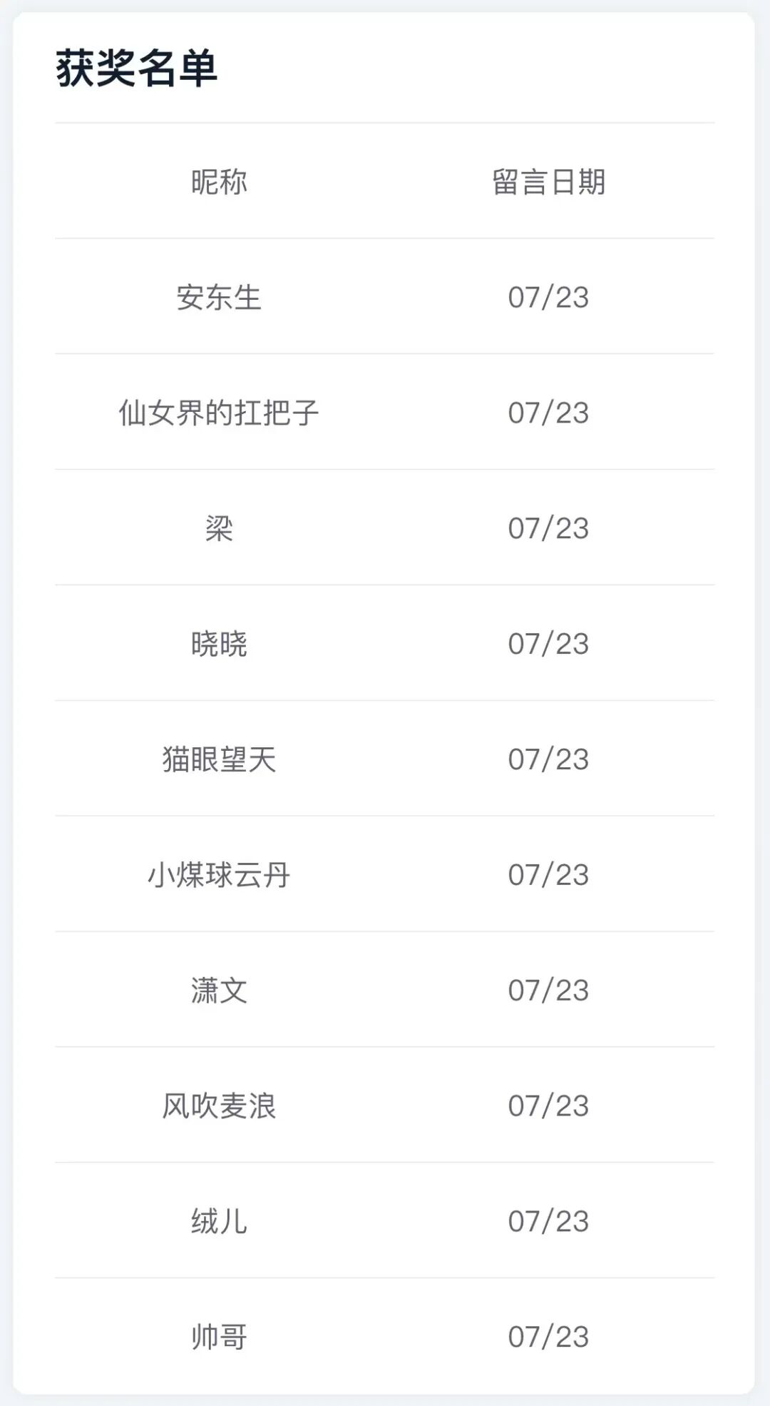 截至2023年8月10日14:00,小程序留言点赞数前10位有机会成为获奖用户哟~