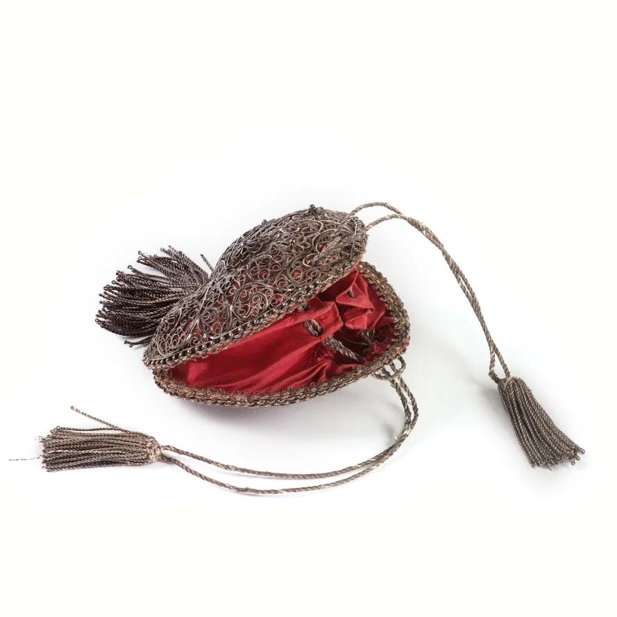 (银累丝心形钱包,1660-1699年间,可能是德国纽伦堡, ©英国维多利亚与艾尔伯特博物馆)
