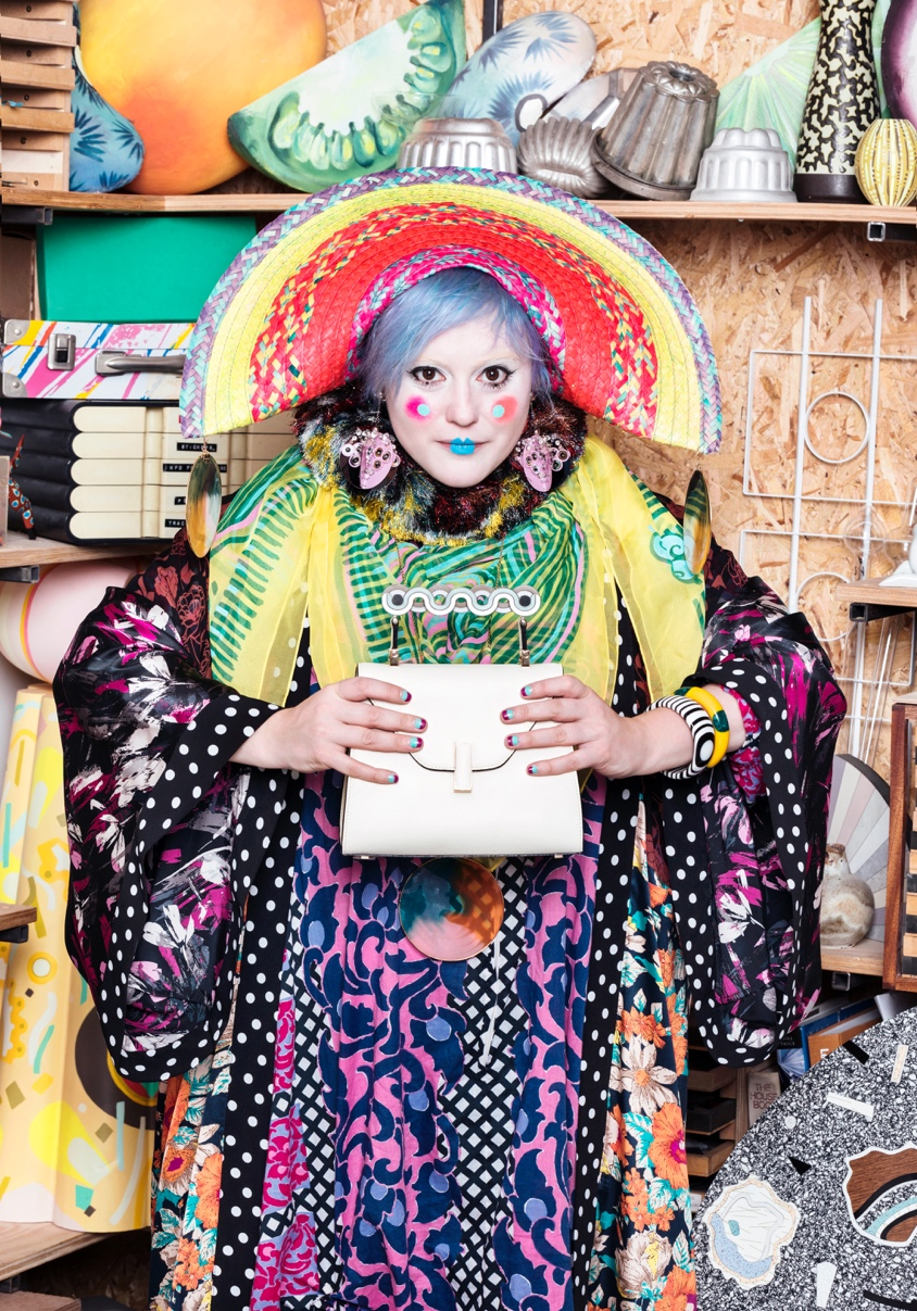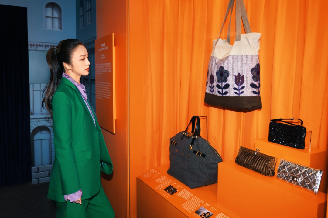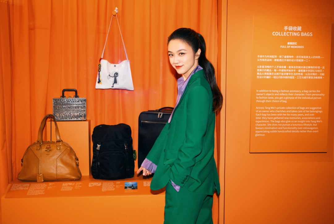 在历史的脉络中,包袋越来越多样化的脉络也清晰可见。从18世纪藏在大裙子里放随身物品的“口袋包”到作为贵族身份象征的各类手拎包,再到工业革命时期随着交通工具的革新,为了方便乘船坐火车而生的各类实用性旅行包、背包、随身小包。包袋就像任何一样文明的产物,会随着日常生活的变迁不断发生变化。包袋里的世界,也日益变得宽广。早先为了方便女性们装入化妆品和私人小物的歌剧手袋等,如今化身为各类男生也能用的手包、晚宴包。包袋的功能和性别分界也不再泾渭分明,在一次次的更迭中,它朝向更自由的可能,也书写着我们认识自我、探索世界的故事。正如汤唯把“陪伴”视为包袋对自己的重要意义一样,它是我们的“生活博物馆”。每个人的生活都有着不同的气息、情感与踪迹。包袋不仅仅是私人的秘密空间,也是向他人表达“我是谁”的重要方式,是我们的展厅。(Bethan Laura Wood 与 Valextra 的合作,图片由 Anthony Lycett 提供)作为演员,汤唯深谙包袋也是电影服化道的重要一环,常常能折射出演员对角色投射出的独特连接。在“包里包外”中国展特别呈现的“手袋收藏”主题里,汤唯分享了她在电影里为角色挑选的包袋。在《北京遇上西雅图》里,她饰演跋扈张扬的“拜金女”文佳佳。汤唯选择了一只银色的Chanel“2.55”三折钱包,用闪亮高调的皮面,来表现用金钱支撑着并不牢固的安全感与底气的女主角。《月满轩尼诗》中,她是倔强沉默的爱莲。汤唯想象中的爱莲,应该会喜欢背一只实用朴素的托特包,在香港热闹的人潮中静静地行走。一次机缘巧合中,她在轩尼诗的店铺里发现了一只图案有趣的手作托特包,就像不打眼,却有着自己独特韧劲的爱莲。正如电影主角需要用不同的包款来诠释生命故事,包包的功能、设计或所反映的地位也会由不同的使用者给予新的定义。有不少传奇包款,更直接以代表人物命名。