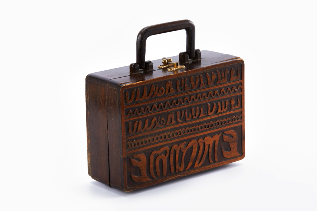 这些跨越时间和地域的包袋展品让汤唯觉得很有意思,看包展就像“近距离地与历史接触了一把”。提到包袋,我们似乎总会马上跟女性和“装饰品”联系起来。但包袋远不止于此。就像“包里包外”展的三个分区——“功能与性能”“地位与身份”“设计与制作”一样,包袋的含义是多重的,他们是器物,也是符号,是日常本身,也构成历史。“包里包外”展上,还有来自17世纪德国的银累丝心形钱包、19世纪英国用来装信件的珠片装饰信件夹,以及清朝的腰带包……策展人希望,能通过展示来自各个时代和世界各地的男性、女性甚至儿童包款,来还原包袋的丰富内涵。