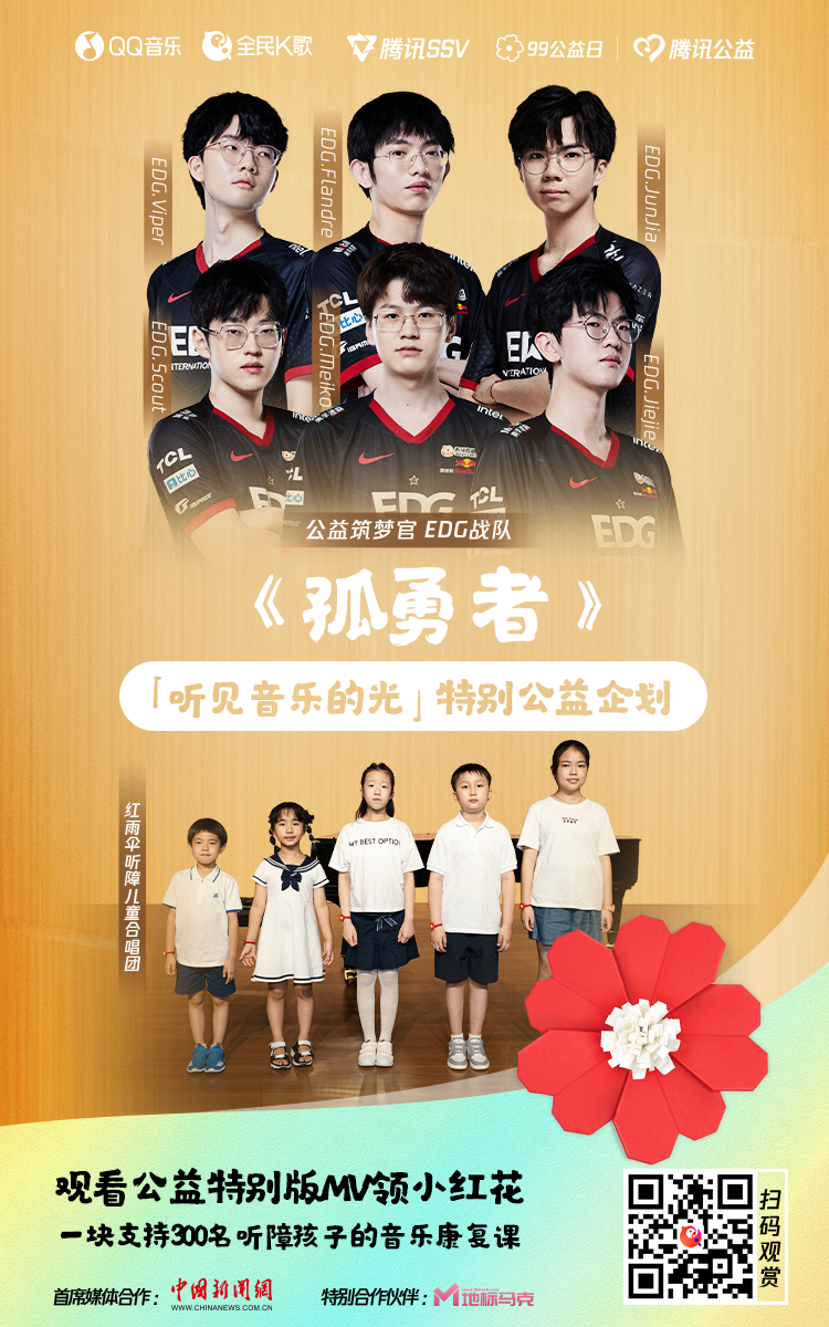 我们特邀了siyang所属的红雨伞听障儿童合唱团,重新演唱了陈奕迅的《孤勇者》,点击播放下方视频,可以听到孩子们歌声里传递的光。