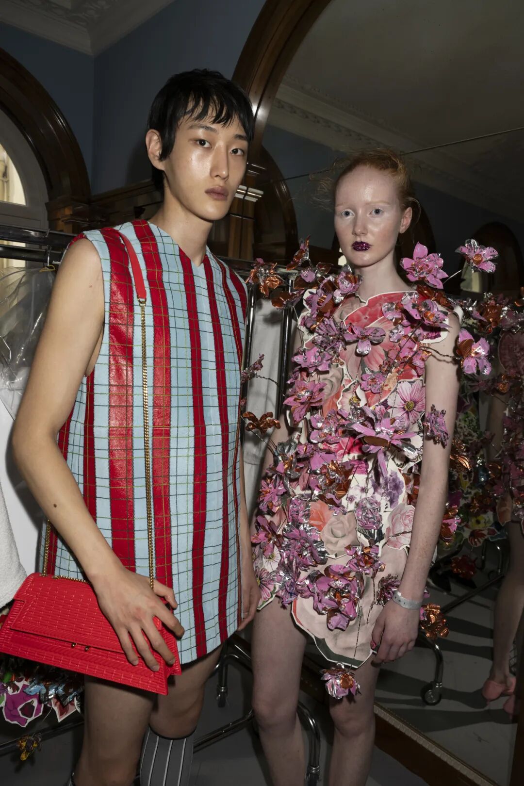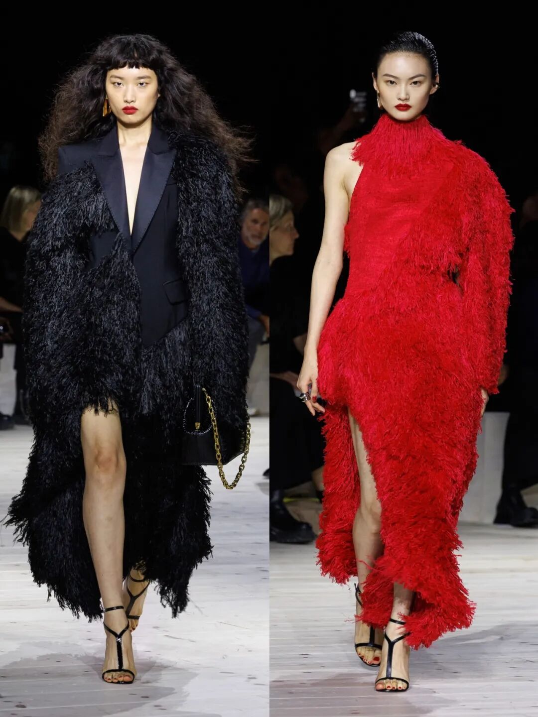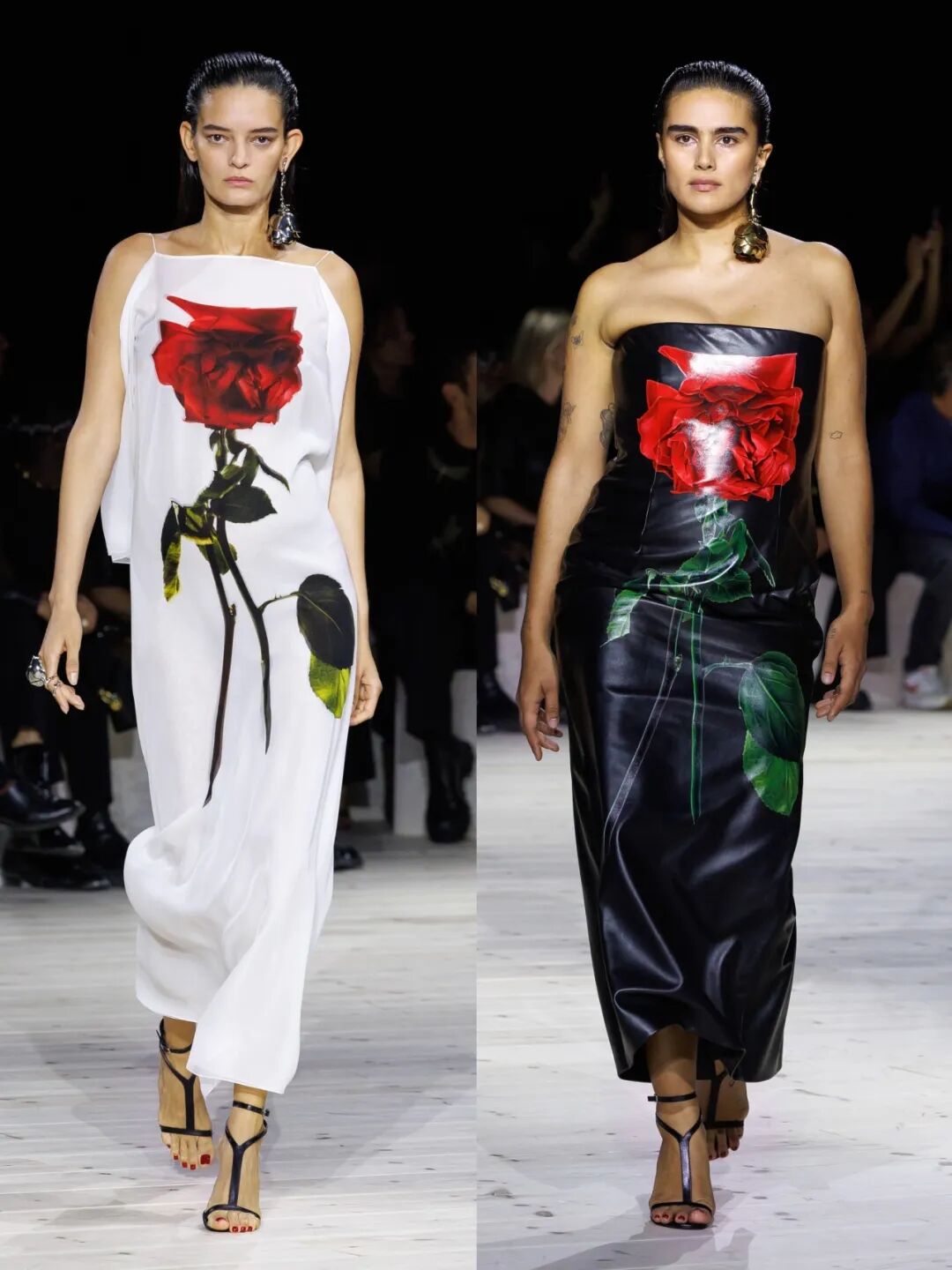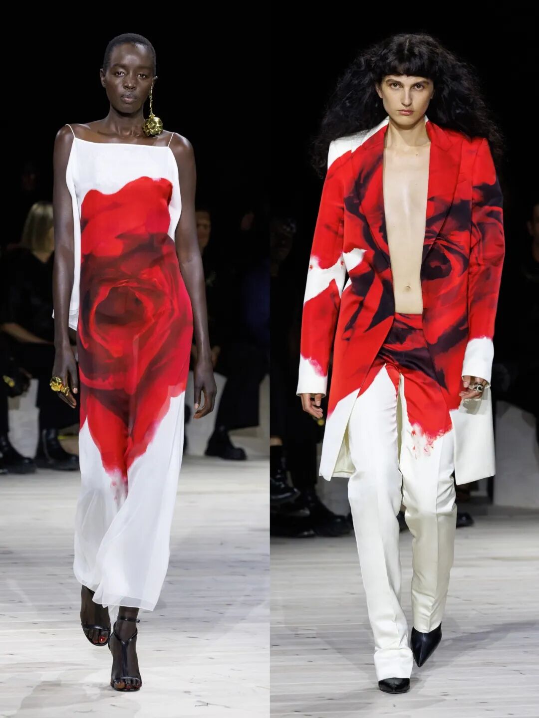Sarah Burton 在笔记中说,“这一系列灵感来自女性身体构造、伊丽莎白一世、血红色玫瑰以及 Magdalena Abakanowicz,一位敢于挑战规则、极富创造力、拒绝妥协的艺术家。这场秀献给 Lee Alexander McQueen,长久以来他一直希望能够赋能女性,献给我的团队,感谢他们的热情、才华以及忠诚”。