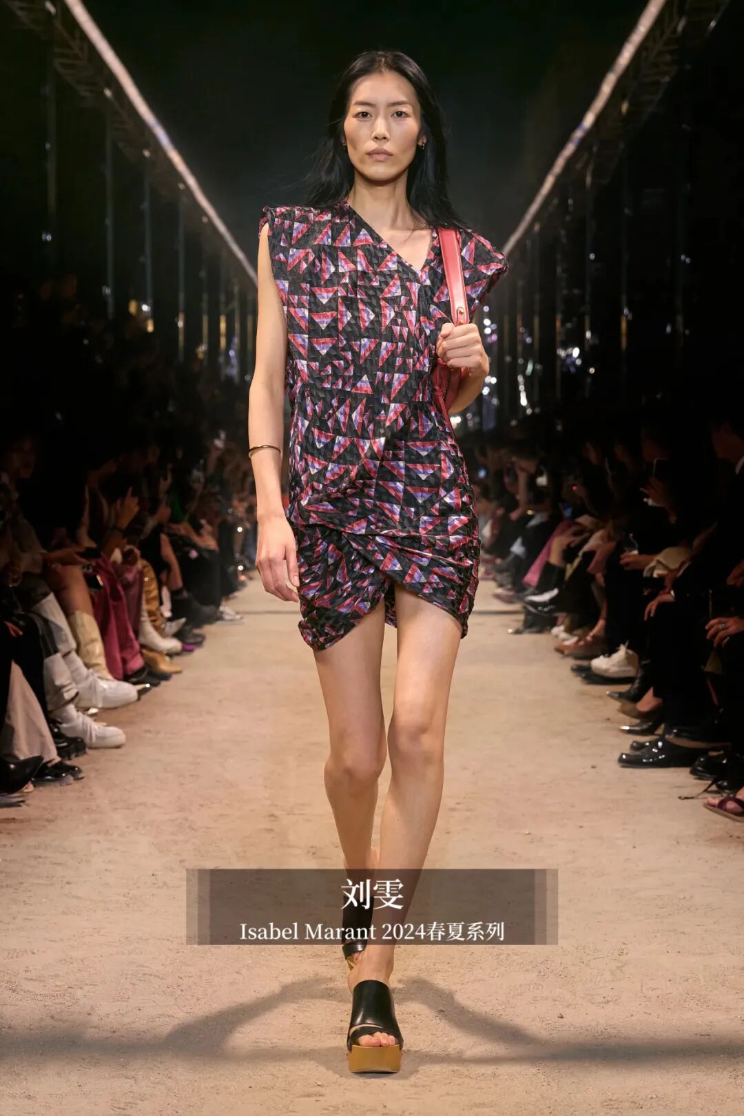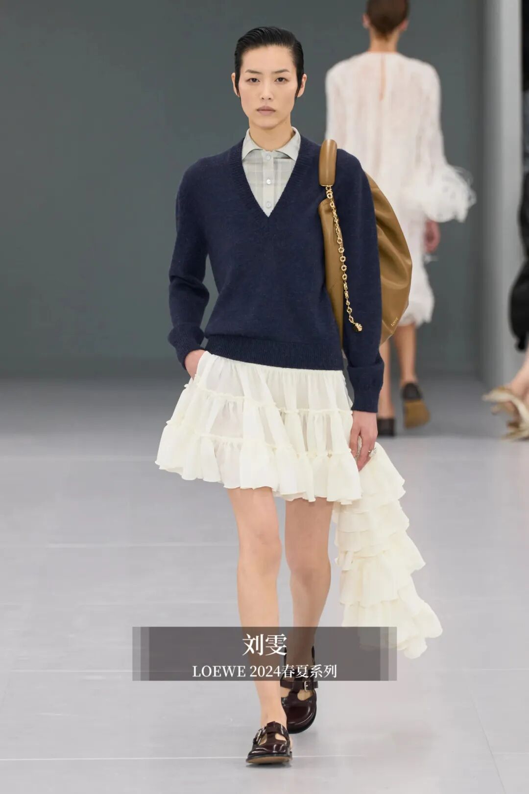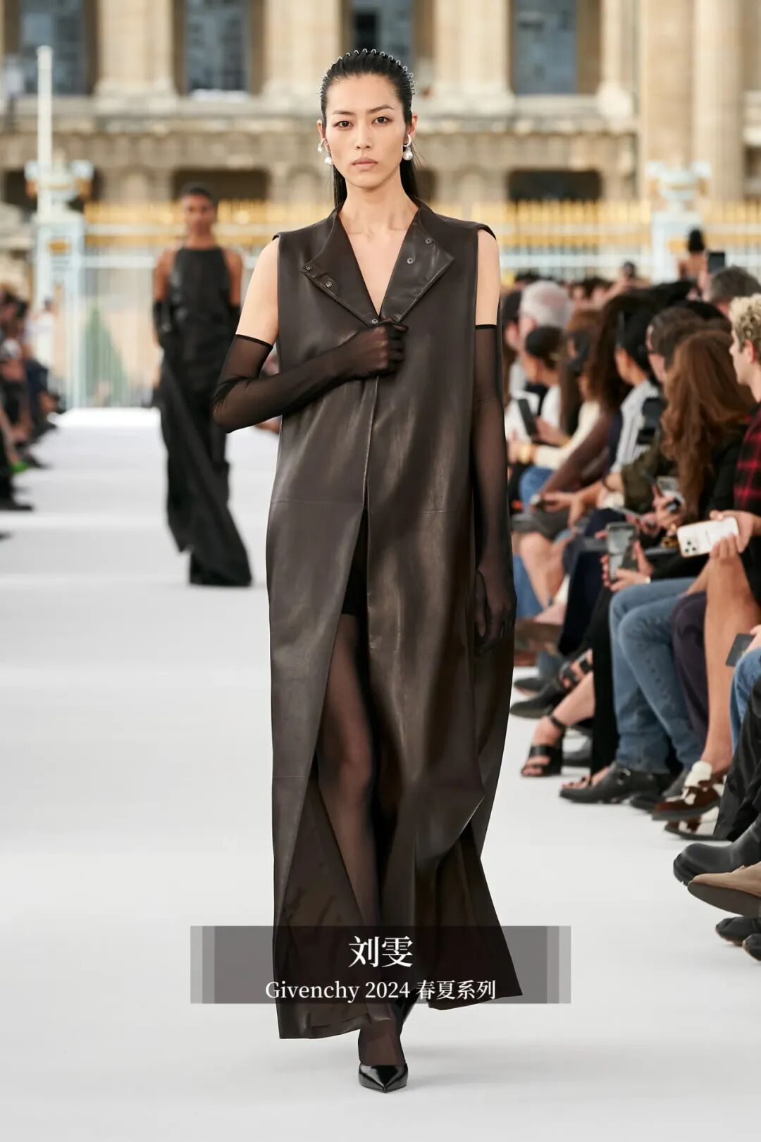 刘雯可是这届时装周的 “劳模担当”,刚刚结束的巴黎,一共完成了 9 场走秀。如果将纽约、米兰也计算在内,刘雯这一季共走了 17 场秀,包括 Chanel 、MiuMiu、 Balenciaga、 Alexander McQueen 、 LOEWE 、Isabel Marant、 Schiaparelli 、Givenchy、The row、 Boss、Bottega Veneta 、 Versace 、 Prada、Tory Burch、Michael Kors 、 Khaite 、Proenza Schouler,其中 BOSS 与 Tory Burch 都拿到了闭秀 look,还作为嘉宾受邀观看了 Gucci 发布秀。
