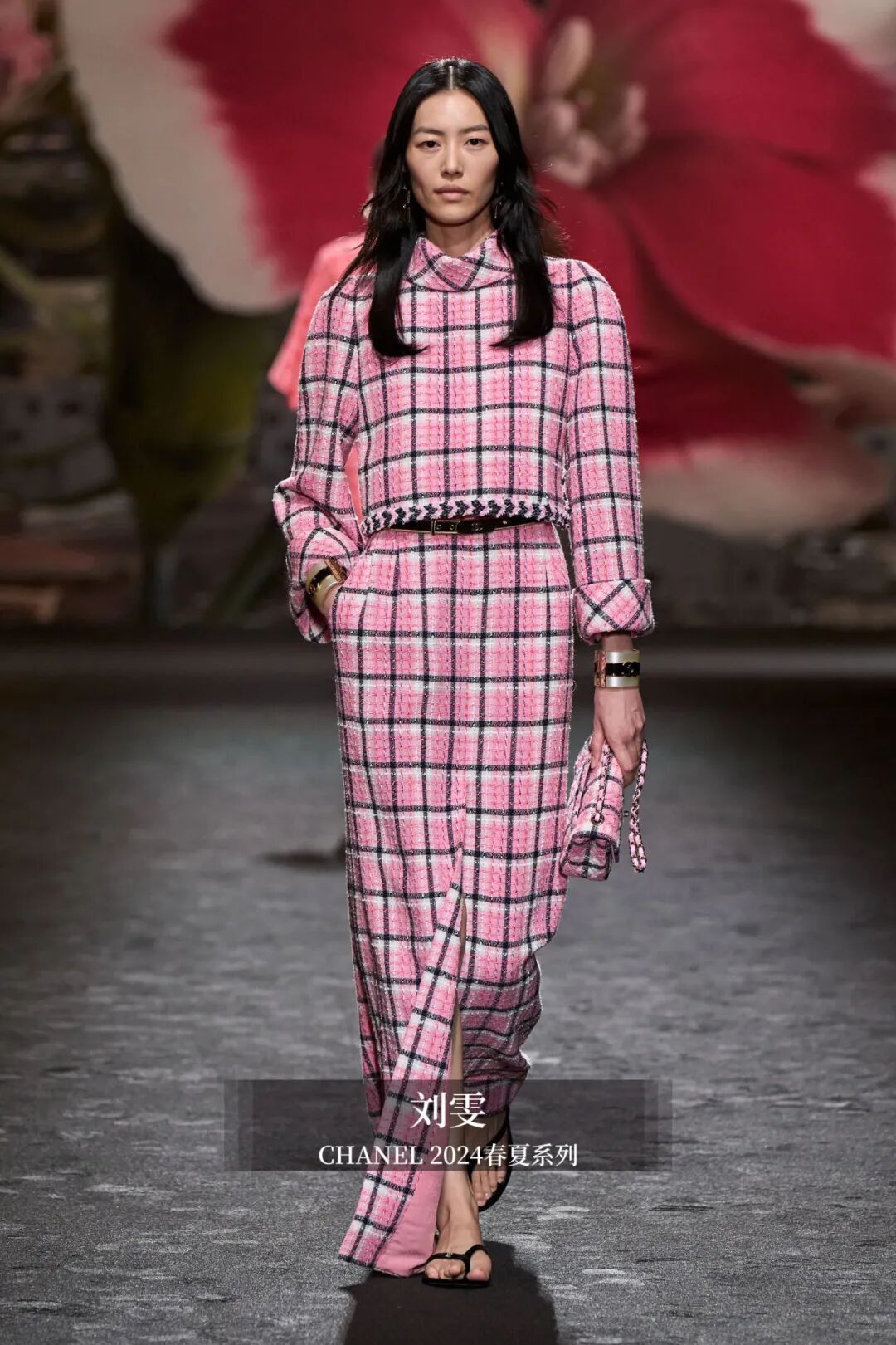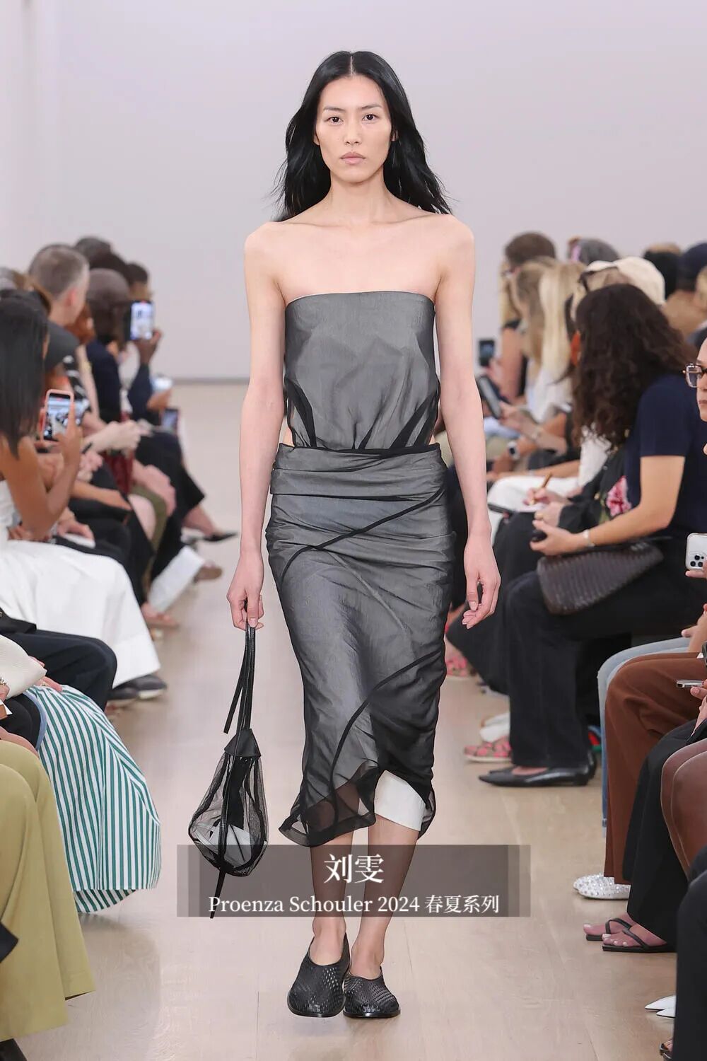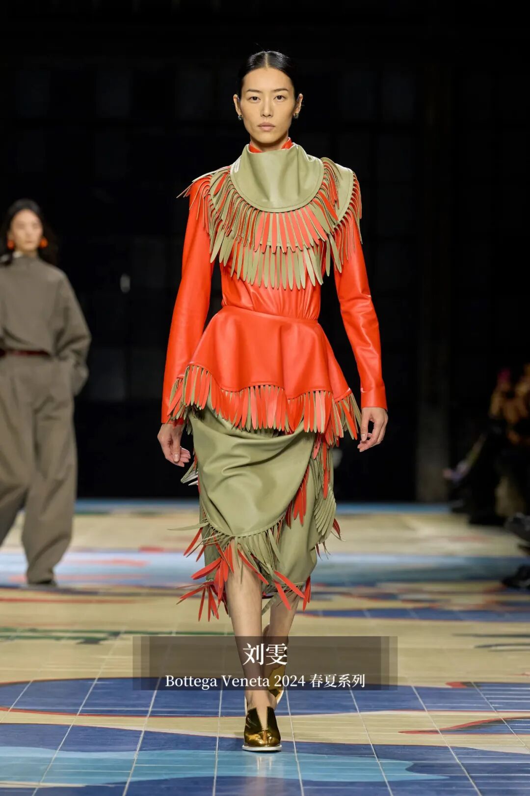 刘雯可是这届时装周的 “劳模担当”,刚刚结束的巴黎,一共完成了 9 场走秀。如果将纽约、米兰也计算在内,刘雯这一季共走了 17 场秀,包括 Chanel 、MiuMiu、 Balenciaga、 Alexander McQueen 、 LOEWE 、Isabel Marant、 Schiaparelli 、Givenchy、The row、 Boss、Bottega Veneta 、 Versace 、 Prada、Tory Burch、Michael Kors 、 Khaite 、Proenza Schouler,其中 BOSS 与 Tory Burch 都拿到了闭秀 look,还作为嘉宾受邀观看了 Gucci 发布秀。