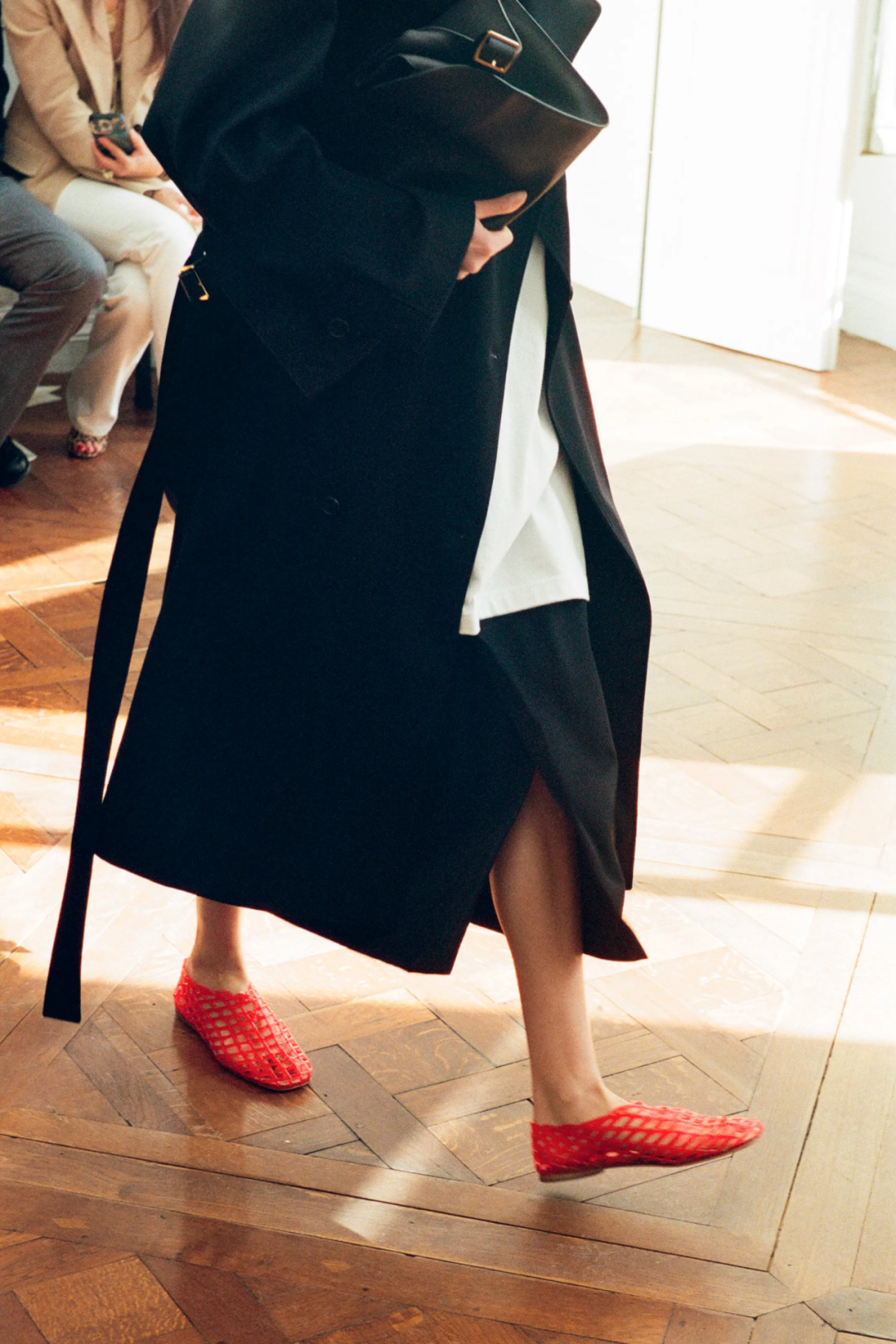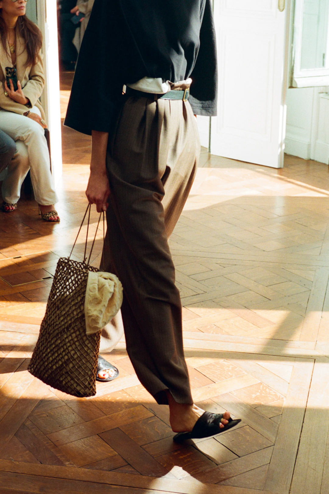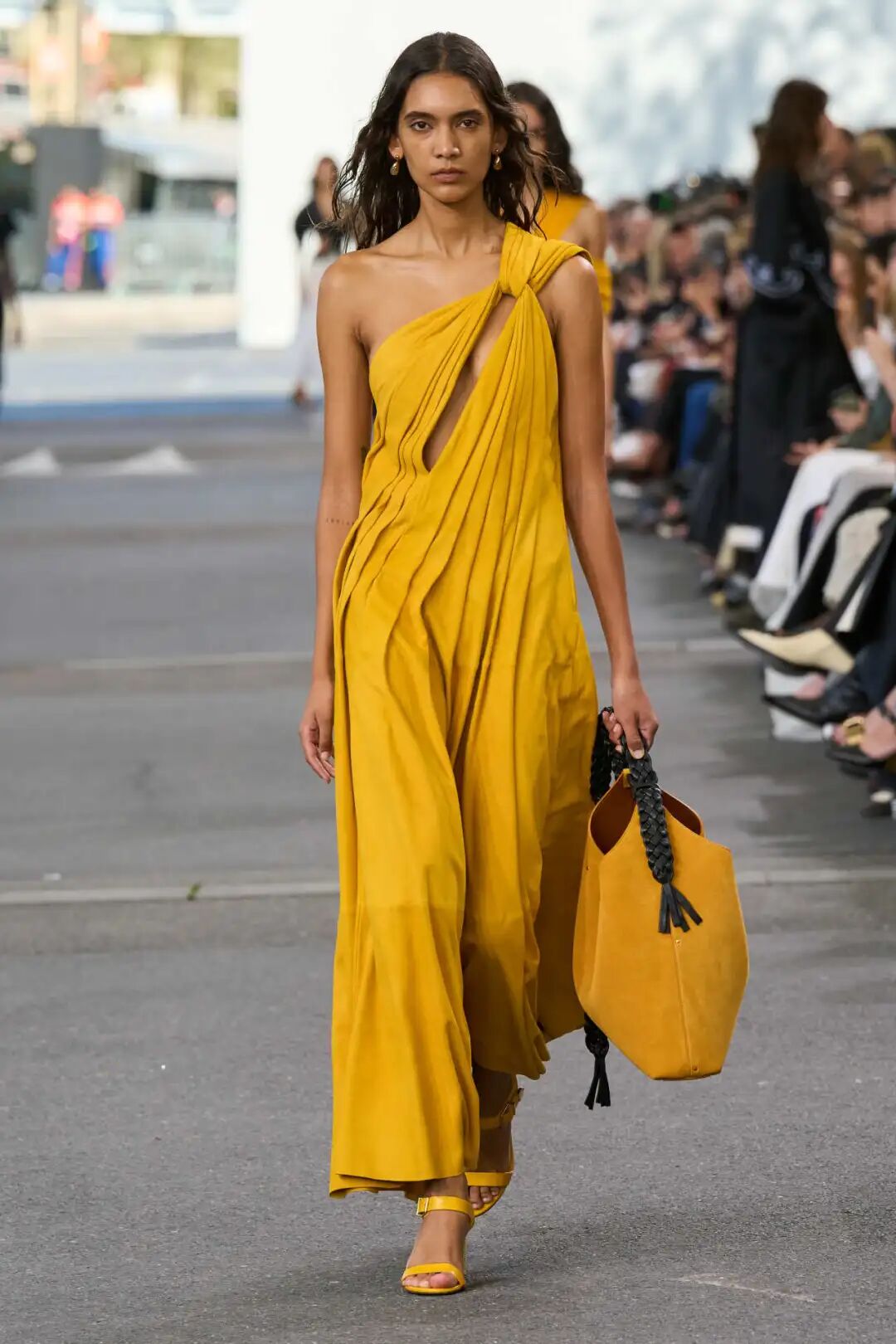 这一季的 THE ROW 一如既往的气定神闲,松弛有度。从 T 恤式连衣裙,雨衣、派克大衣、到斗篷和晚礼服,简约流畅的廓形加同色系的搭配适应各种场合,毫不费力地为女性打造了一个理想衣橱。这一季的时装秀中还融入了更多生活中的场景,模特把毛巾塞进风衣里或者搭在肩膀上,就像刚刚从海滩回来一样生动。