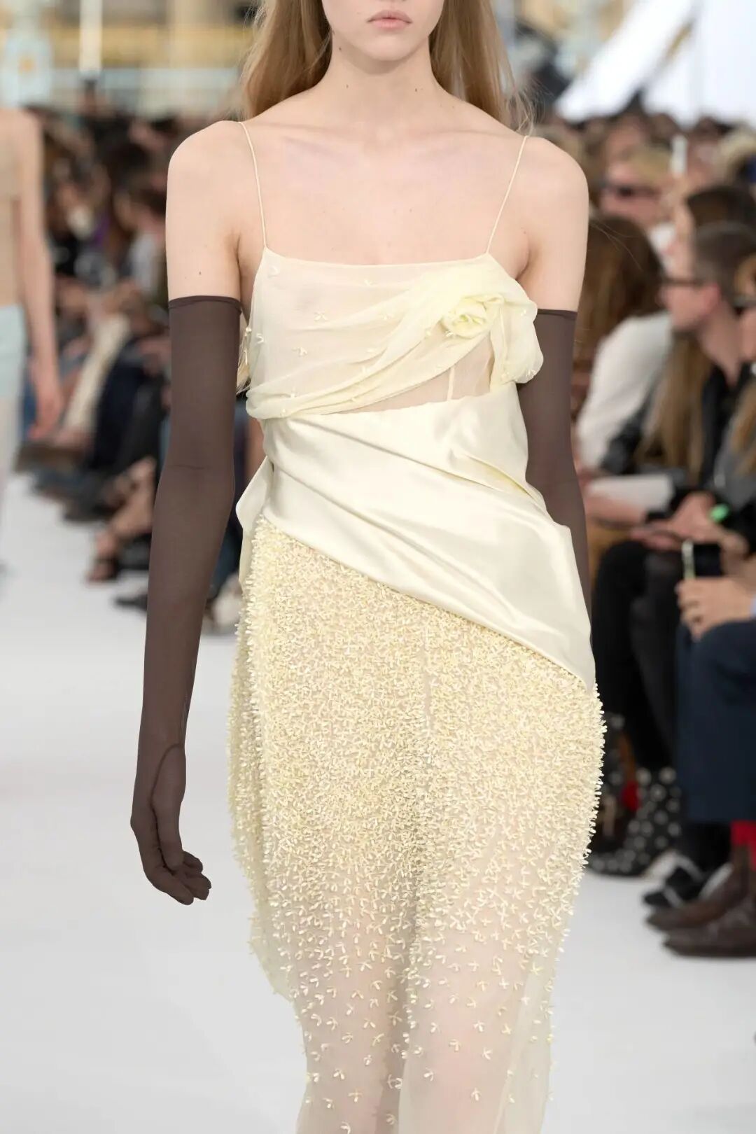 Valentino 2024 春夏以 “ L'École 学校” 为主题,聚焦回归我们的身体,庆祝女性与人性之美。将女性身体从男性凝视与束缚中解放,让其拥有自我决策的权力,在自己的肌肤中寻觅舒适。