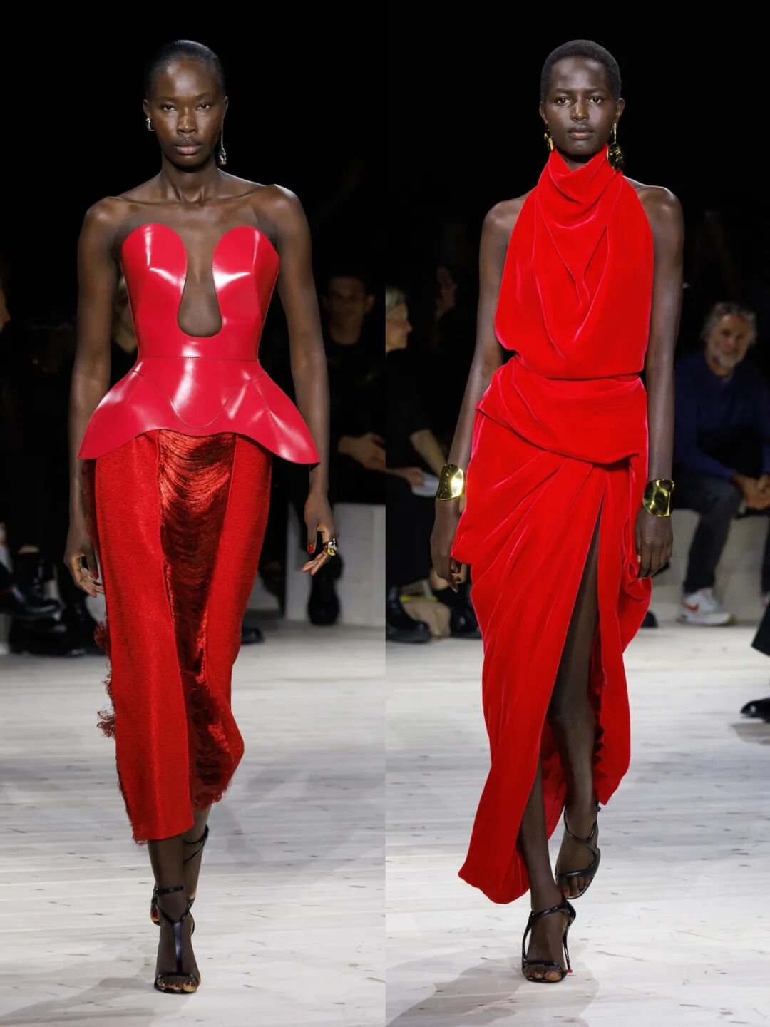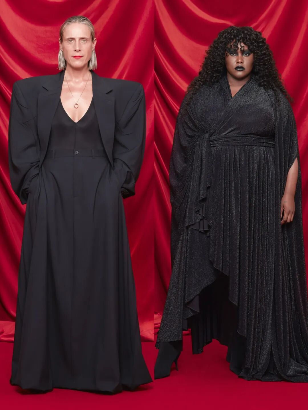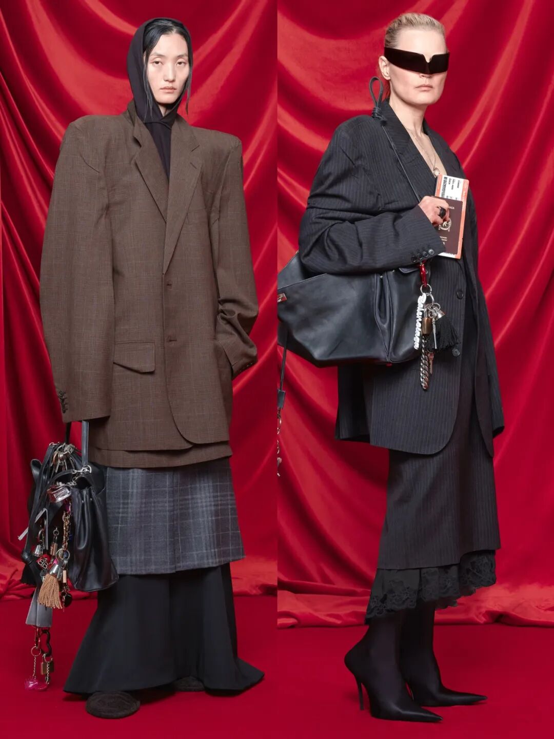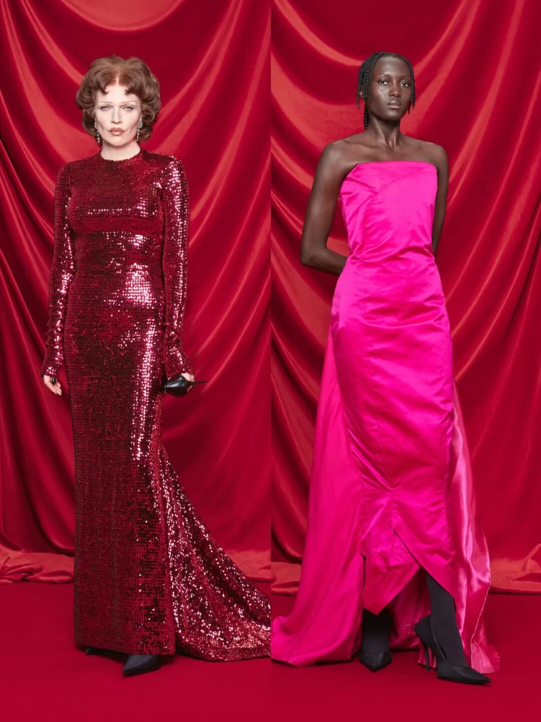 Balenciaga 夏季 24 系列是一场表达 Demna 个人情感的发布秀,向服装的制作工艺致敬。秀场被布置成一座铺满红色天鹅绒幕布的剧院,朋友、家人和同事是这场秀的主角。不仅呈现了 Demna 的个人世界,秀上每个人的身份还展现了他所代表的多元文化。