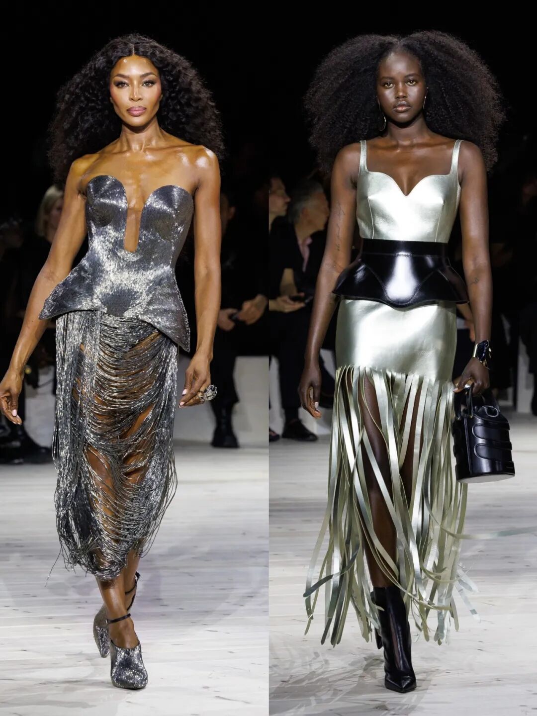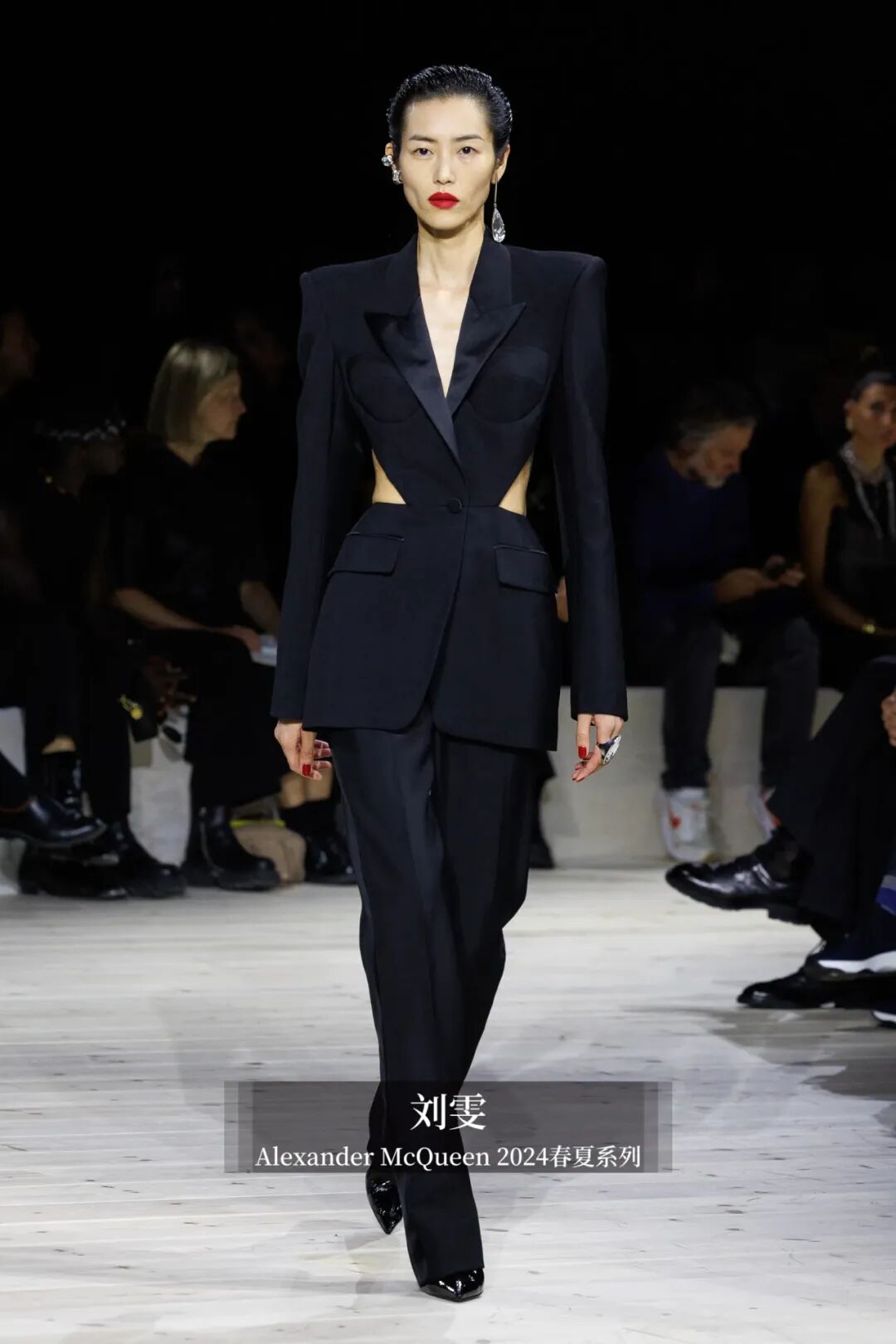 整个 2024 年春夏系列,可以看做是对 Lee Alexander McQueen 与 Sarah Burton 历年作品的致敬与纪念。Naomi Campbell、Kaia Gerber、刘雯等 Alexander McQueen 品牌的好友们,都出现在这一季的秀场,与 Sarah Burton 告别。