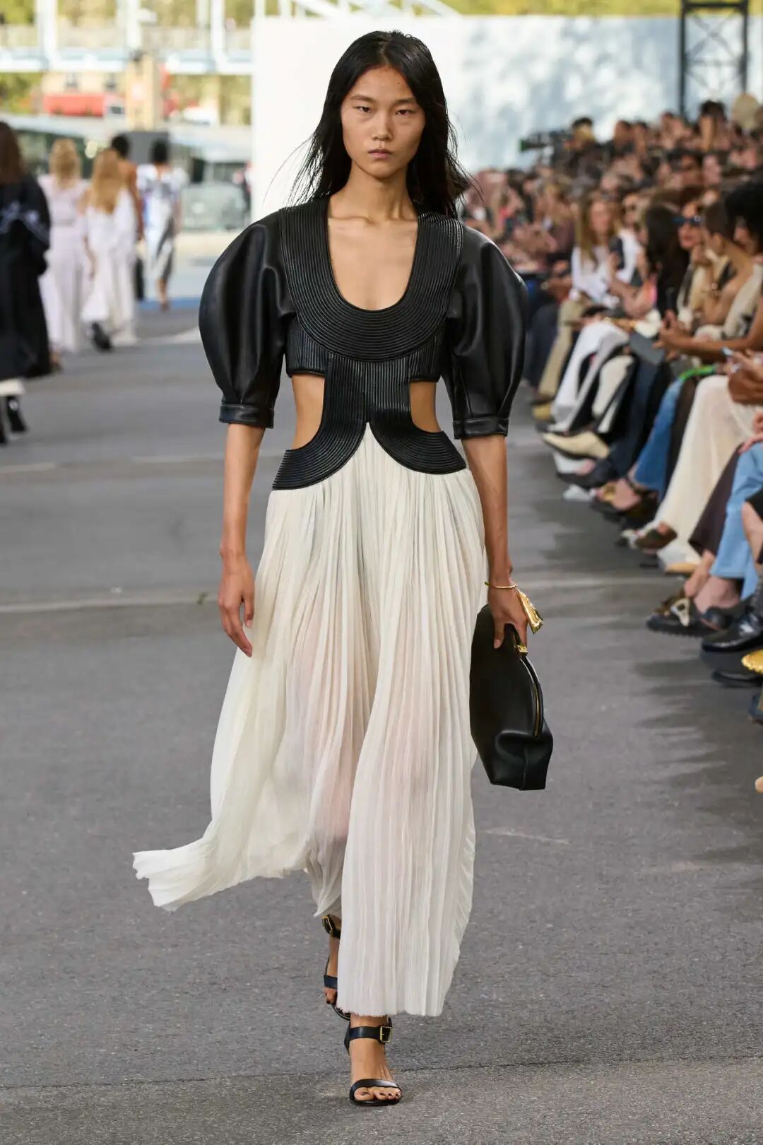 同样献上告别演出的,还有 Chloé。2024 春夏系列是创意总监 Gabriela Hearst 任职的最后一场秀,是她送给自己的一场盛大毕业典礼。秀场选在塞纳河畔,Gabriela Hearst 以植物和花卉为设计灵感,交出一张浪漫而富有诗意的 “毕业大作”。谢幕时,一向低调的 Gabriela 与来自里约热内卢的先锋桑巴舞学校的成员在现场跳起舞来,为自己带来一个快乐的时尚毕业礼。