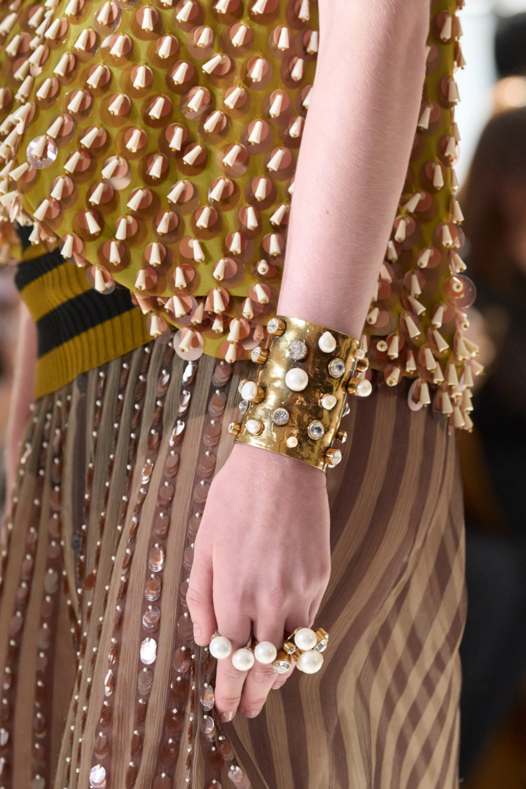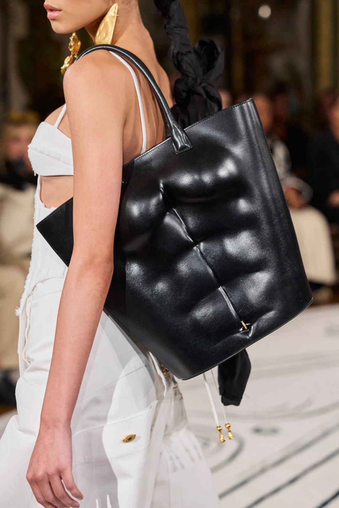 配饰方面,Jonathan Anderson 把 Lynda Benglis 的雕塑作品变成戒指、手镯、胸针、耳环及吊坠,像是把秀场装置带回家的纪念品。手袋方面,柔软的 Squeeze 手袋采用纳帕皮革制成,并有了“小西瓜”的全新配色;Pebble 水桶包以小牛皮材质打造,搭配独特的石卵金属配饰,下一个爆款预备役。