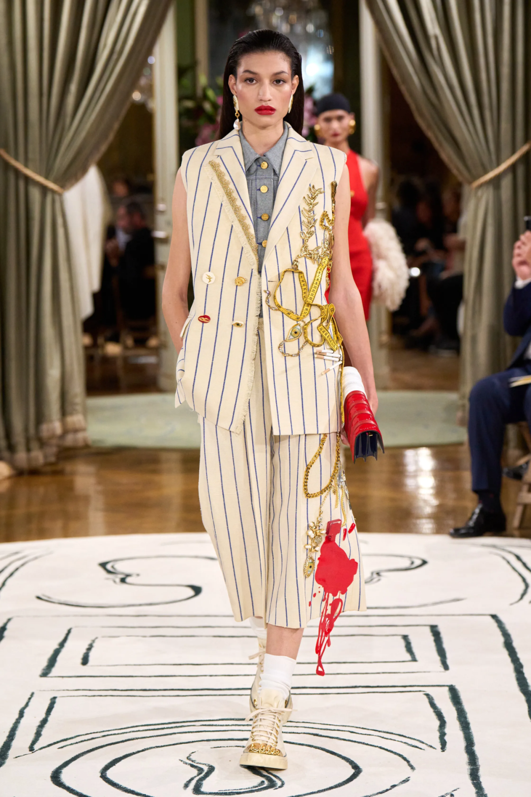 Maison Margiela 2024 春夏男女混合系列发布秀在 Maison Margiela 总部的大厅里举办。秀场将时代背景设置在 20 世纪初期,描摹了一艘巨轮远航的场景,由英国横越大西洋直抵美国的记忆被唤醒。让人极容易联想起 1909 年那艘同样由英国开往美国的 “泰坦尼克号”。