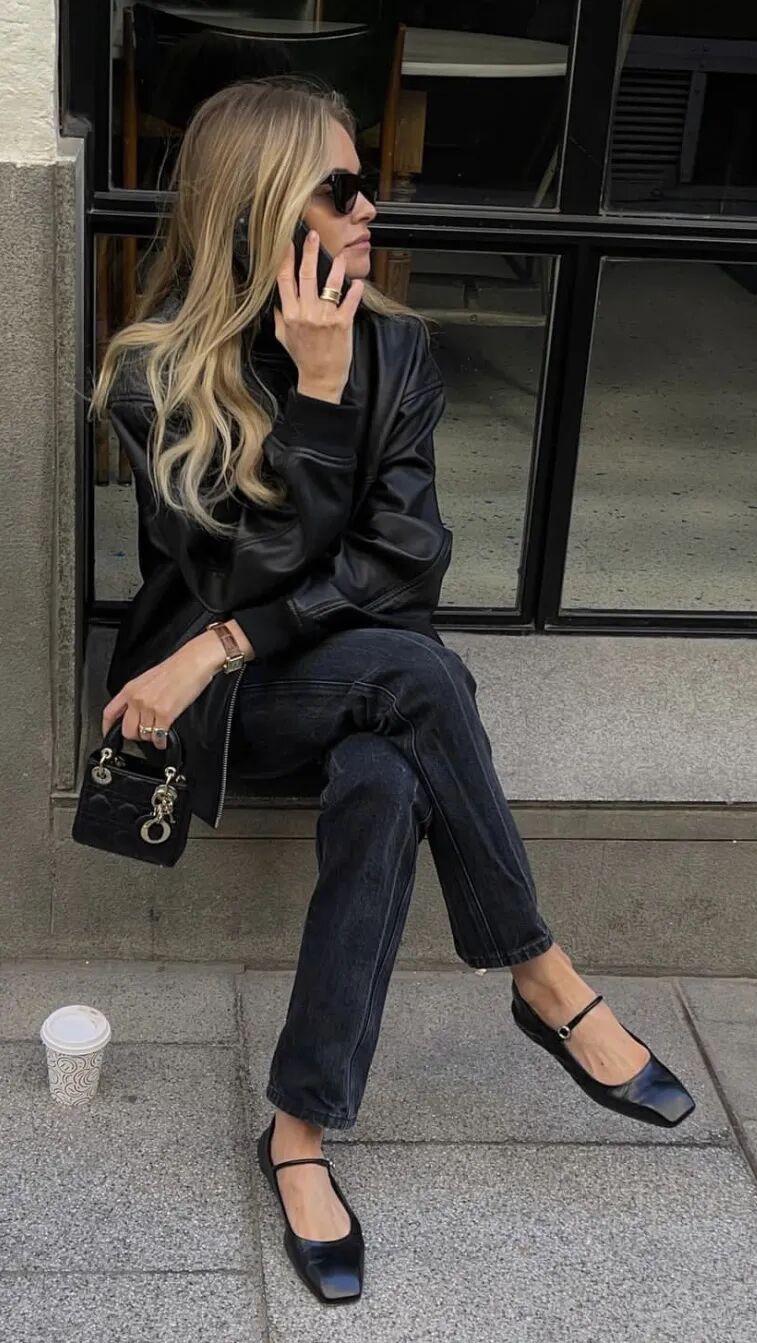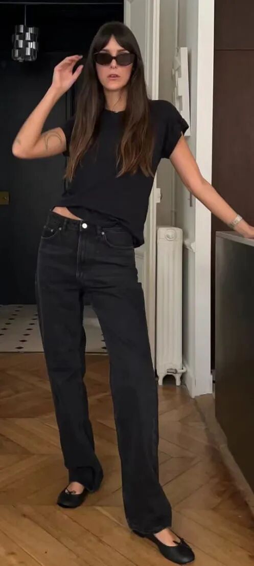 另外,提到一字带芭蕾鞋,博主 Claire Rose Cliteur 脚上这双 Aeyde 鞋也很摩登。扁扁的方型鞋头上脚舒适,简约的黑色皮革好打理又易搭配,怎么穿搭都不会出错。