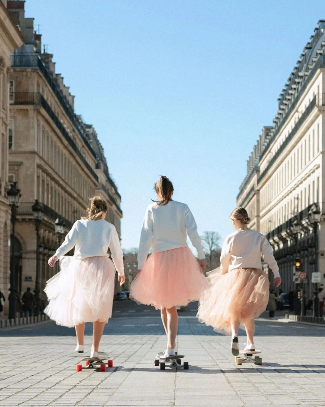 严格的芭蕾舞服是用紧身衣搭配短纱裙,进入日常生活后,保留了 “纱裙” 的精髓,却不用再拘泥于 “紧身搭配”,更加舒适自由。