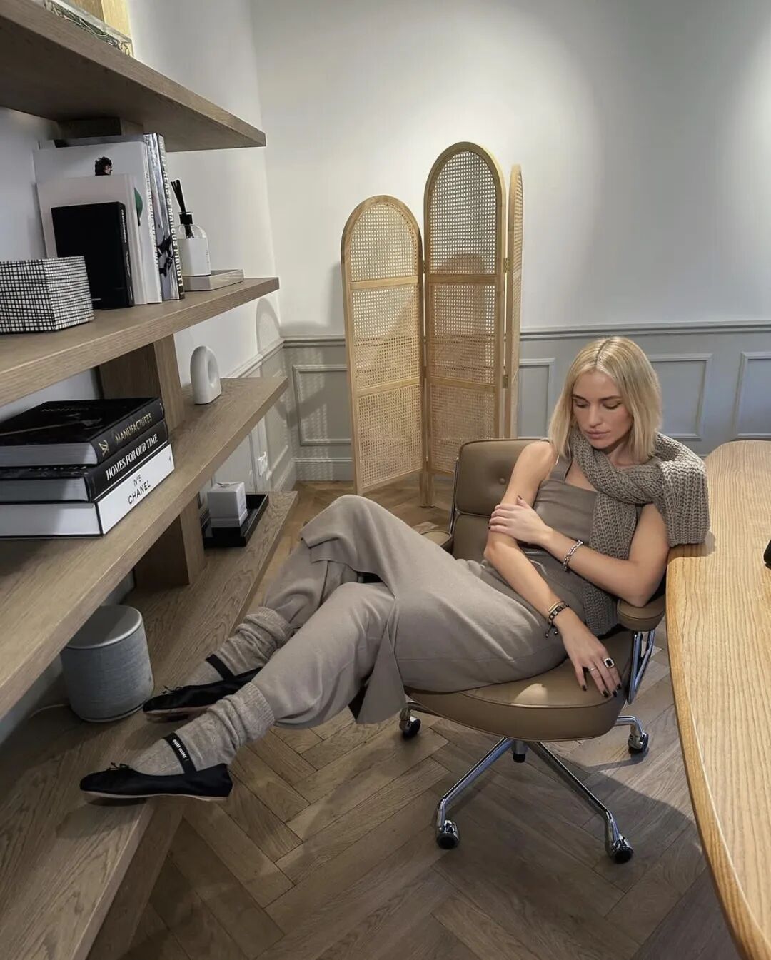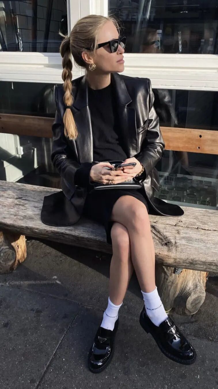 法国博主 Leia Sfez 则大爱巴黎顶级芭蕾鞋品牌 Repetto 的设计,外型轻巧而高雅,经典绑带款式,搭配袜子穿尤其好看。