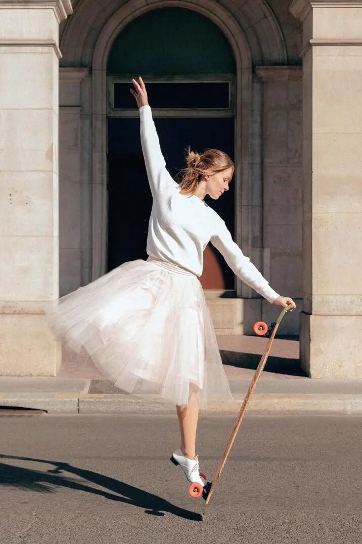除了芭蕾舞鞋和护腿袜套,以芭蕾 Tutu 舞裙为灵感的薄纱裙也有了 “日常化” 的演绎。
