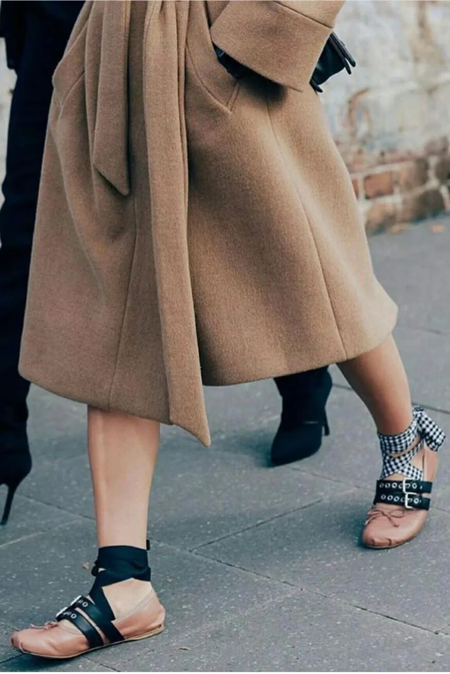 在日常通勤中,一双针织袜能让芭蕾鞋造型变得更加温暖,同时也能与不同鞋款搭配,穿出一种新的时髦。