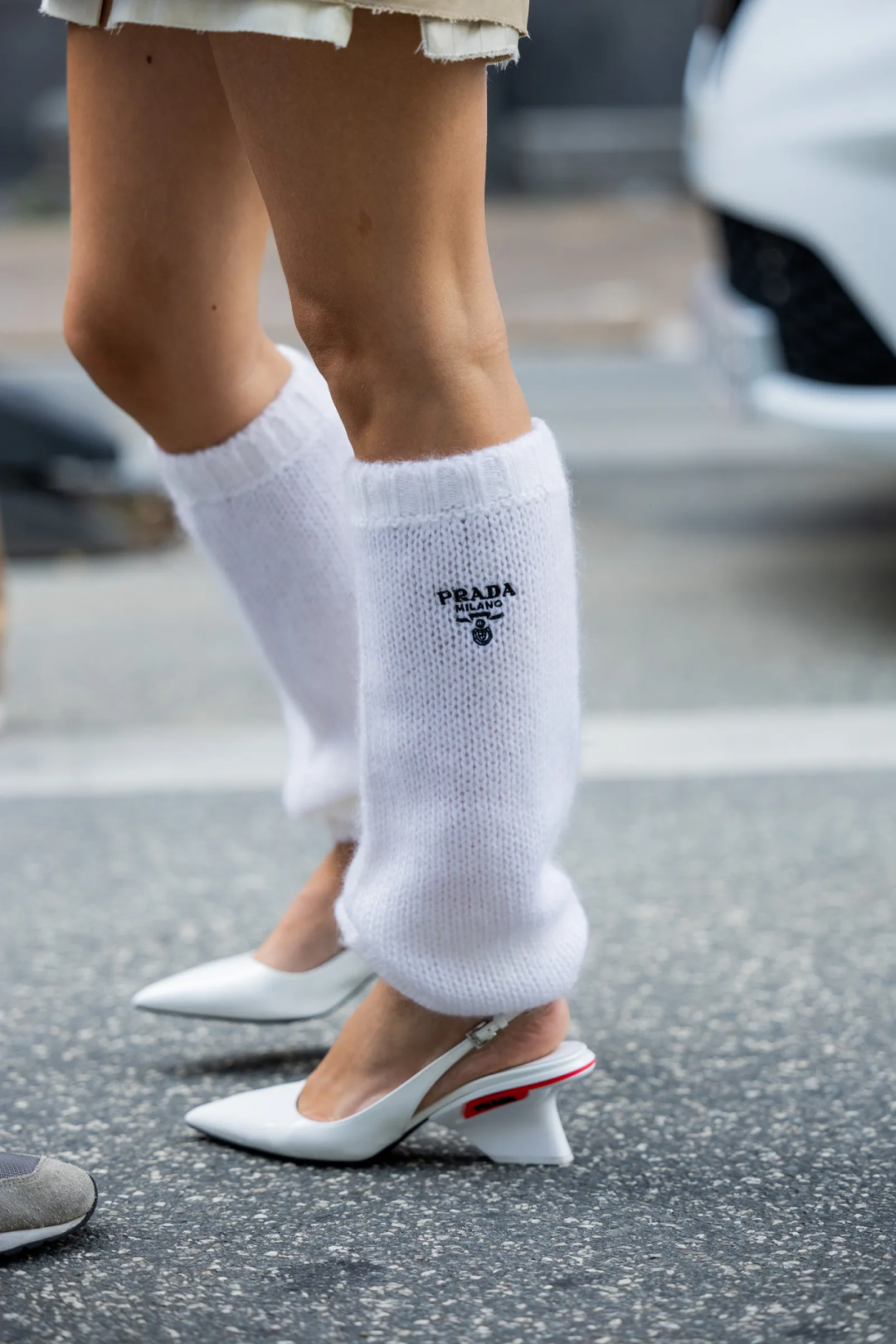 除了芭蕾舞鞋,针织袜套在 Balletcore 风潮中的存在度也相当高。它原本是芭蕾舞者在日常训练中用来保护脚踝的实用单品,在运动健身中也较常见。