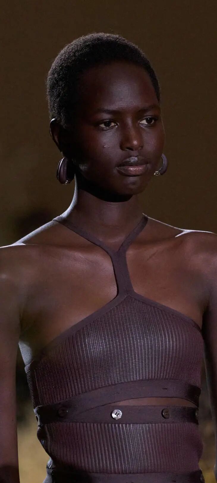 这一季的妆容与配饰很简约,有一种不加修饰的天然的美,灵感源于马术的金属皮革饰品装点极简同色系穿搭。