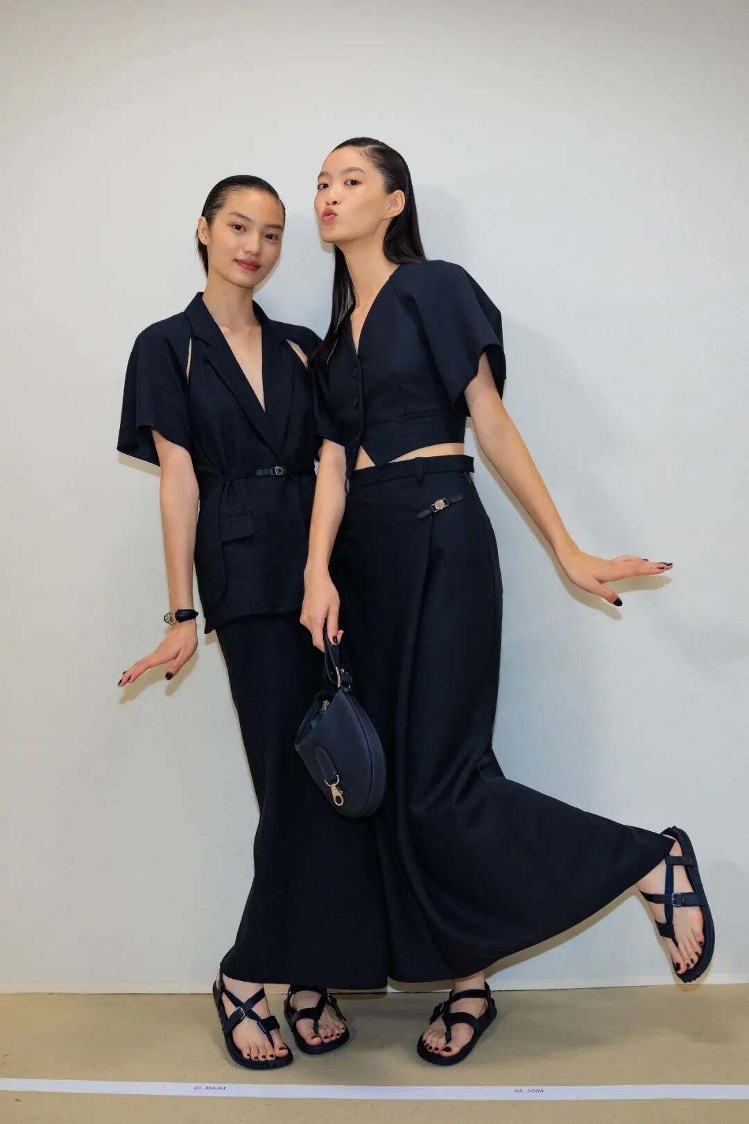 这一季全部 LOOK 搭配平底绑带凉鞋,质感柔软舒适,很百搭。