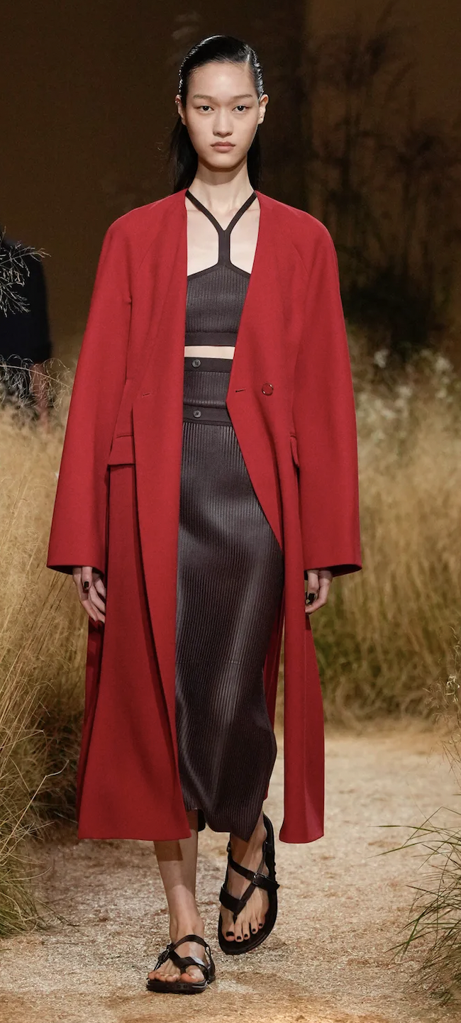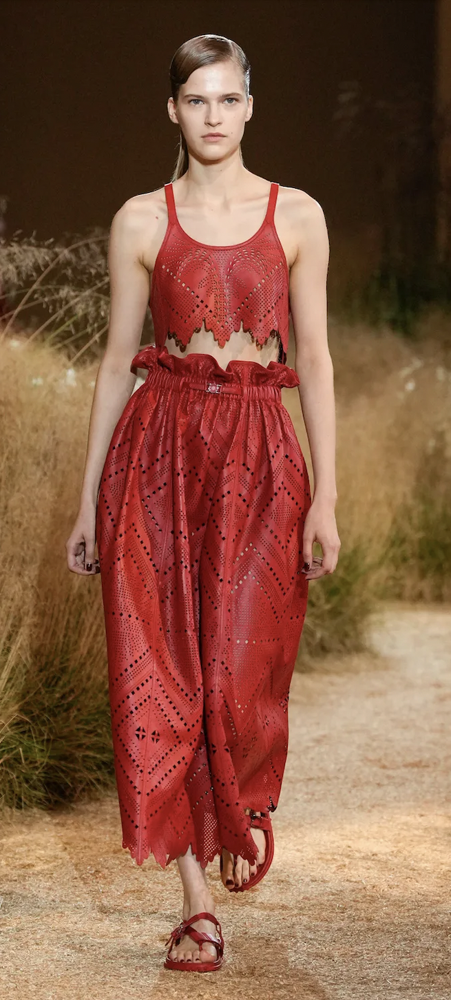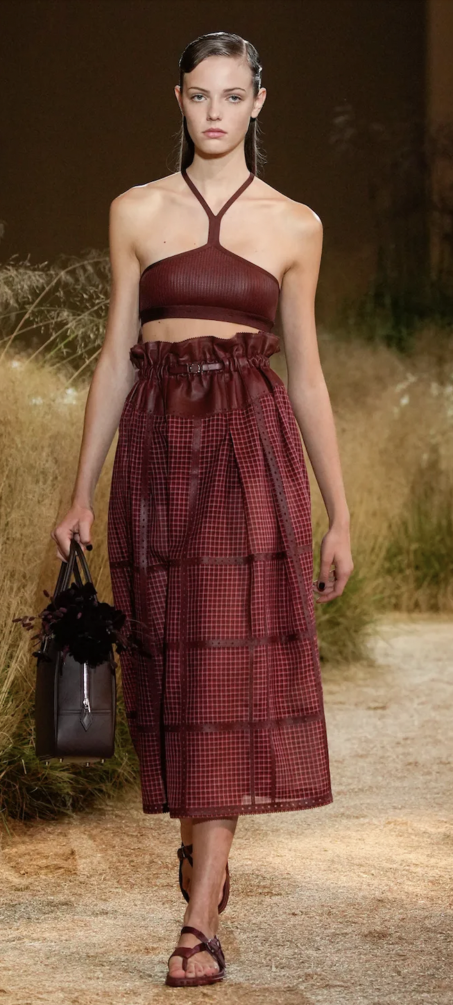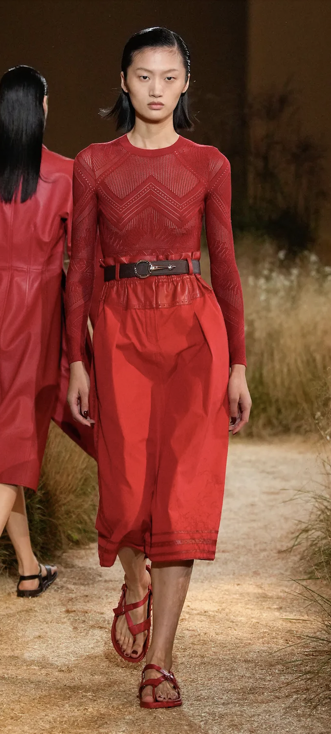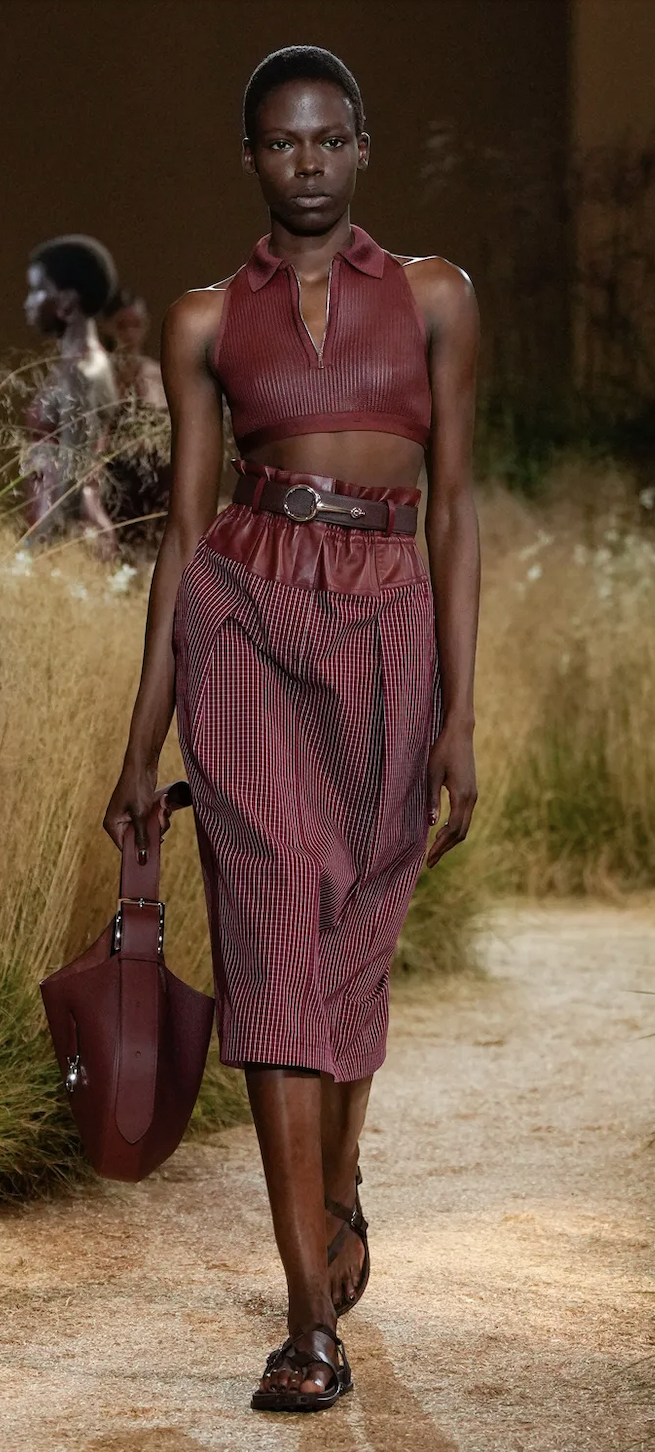 2024 春夏系列依然是我们熟悉的 Hermès ,黑、白、红、棕等源自大自然的色调碰撞着不同的风格与材质,带来一套套春日同色系新装。