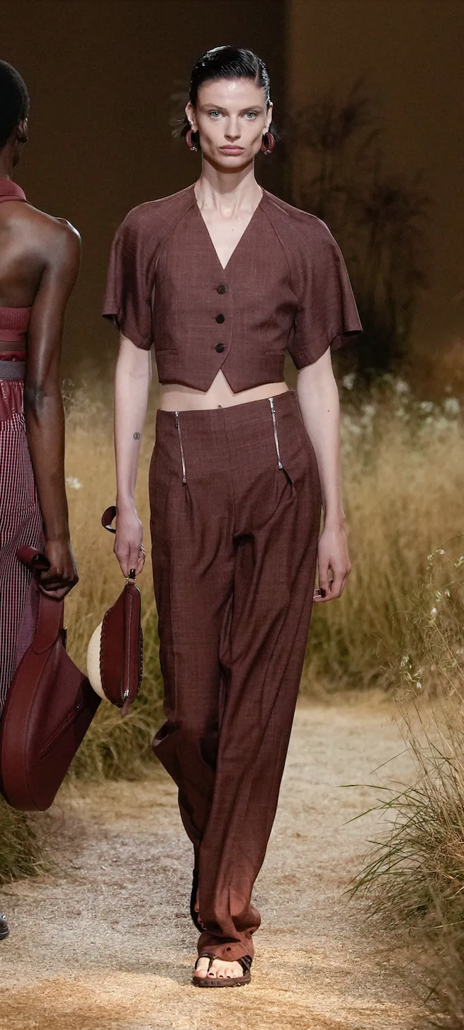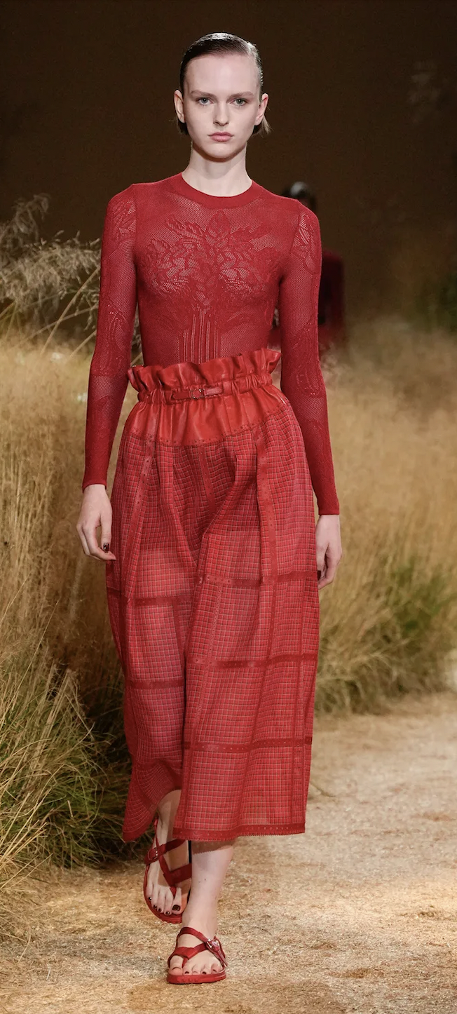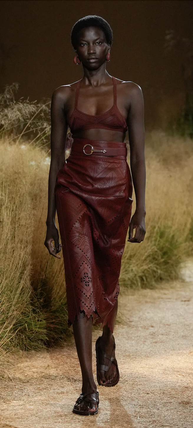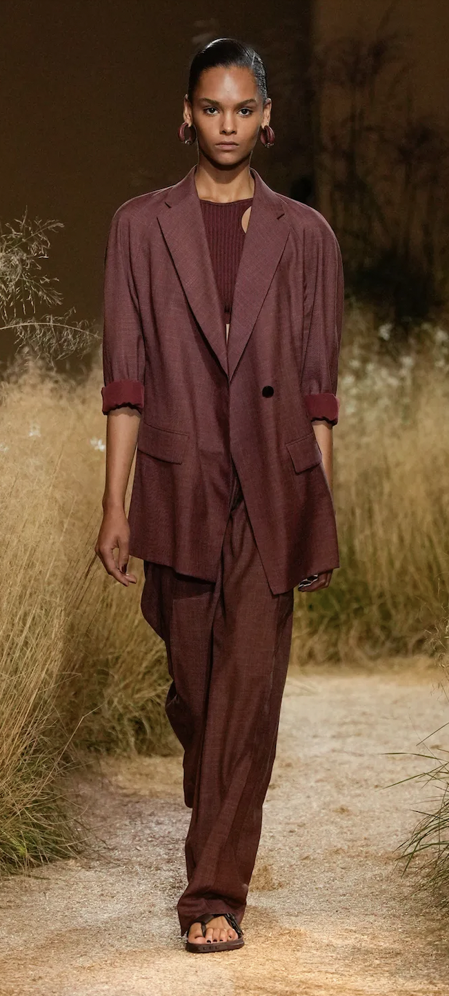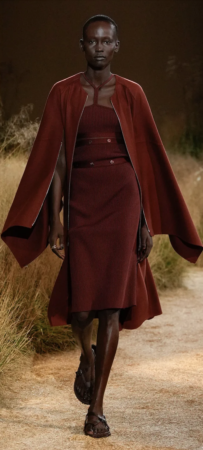 2024 春夏系列依然是我们熟悉的 Hermès ,黑、白、红、棕等源自大自然的色调碰撞着不同的风格与材质,带来一套套春日同色系新装。