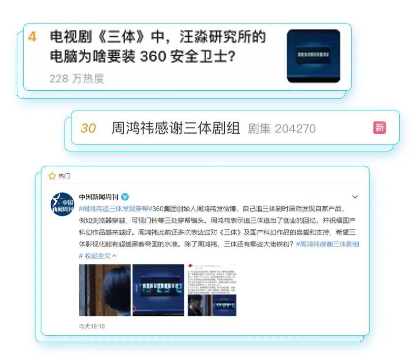 热心用户纷纷投稿说发现电视剧《三体》中出现了360安全卫士的logo!