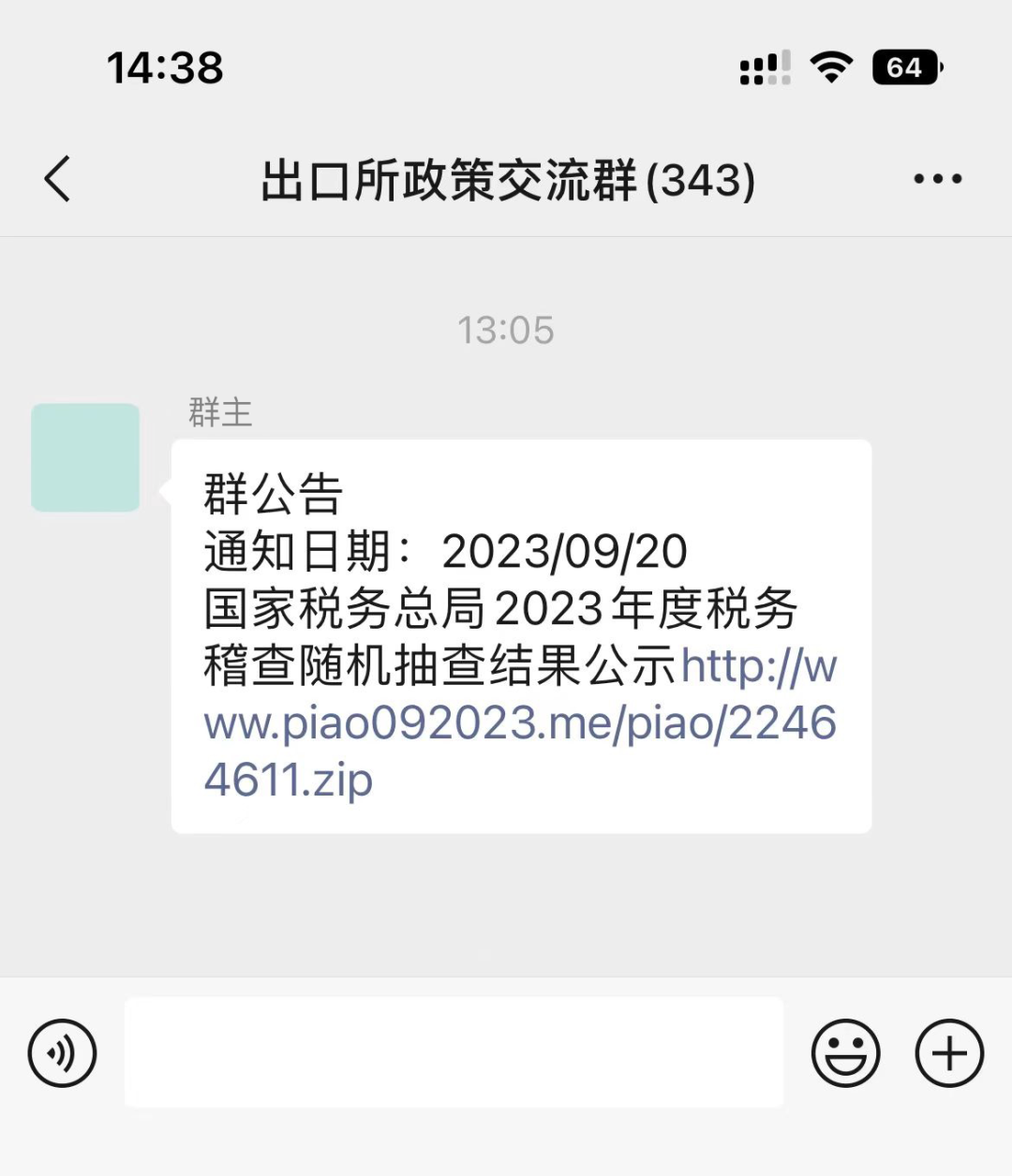 ①骗子通过财务交流、税务政策交流、公司内部等微信、QQ群或电子邮件传播名为“2023企业最新版XXX”、“新版税务系统”等压缩文件(打开后文件内容均为空白,实际系木马病毒)。