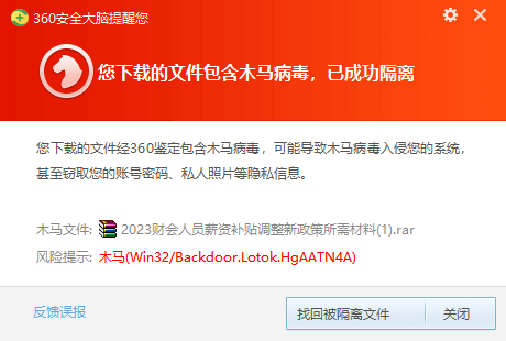 群里看见这样的文件夹,你能不能抵住诱惑?点了你可能就中招了! 360安全卫士每天都会阻止10万+此类攻击,通过分析确认,此类通过伪装“薪资文件”等传播名称的攻击来源为“银狐”木马的新变种分支。此前,360已多次发布“银狐”钓鱼木马的预警,持续抵御攻击和破坏。从当前趋势看,这一威胁还将会持续扩散,影响更多的企业和行业。毕竟年底了,黑客也要冲业绩……![]()