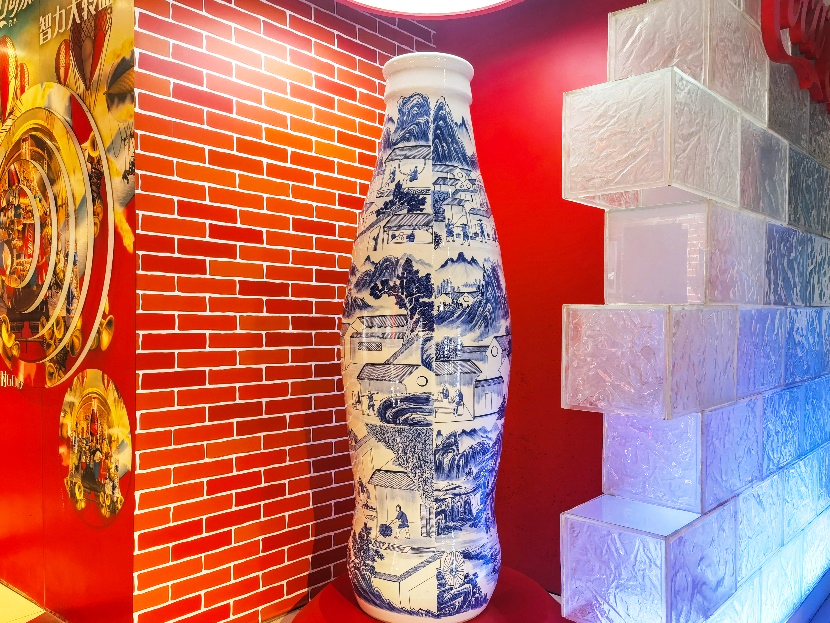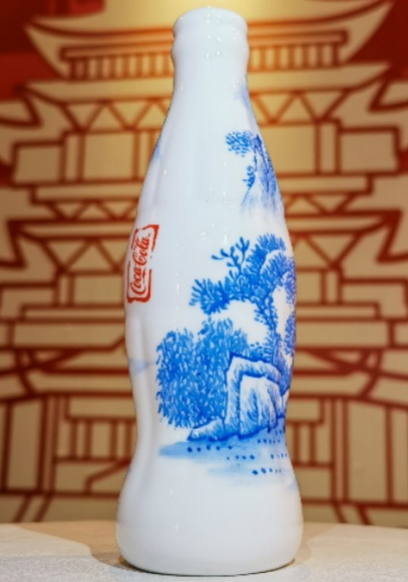 极具江西景德镇特色的2米高可口可乐青花瓶。(藏于江西)