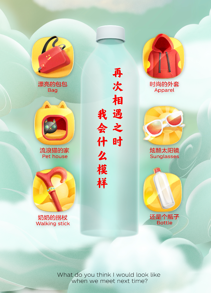 每个塑料瓶都可以被循环利用,塑造成可被循环使用的工艺品,让塑料瓶拥有更有意义的未来。