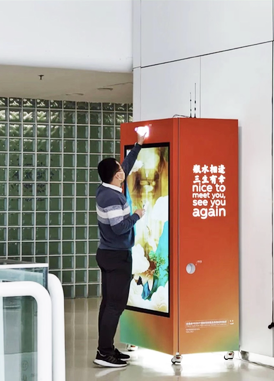 “瓶水相逢 三生有幸”——用冬奥的回收装置做成的“天下无废”互动装置。
