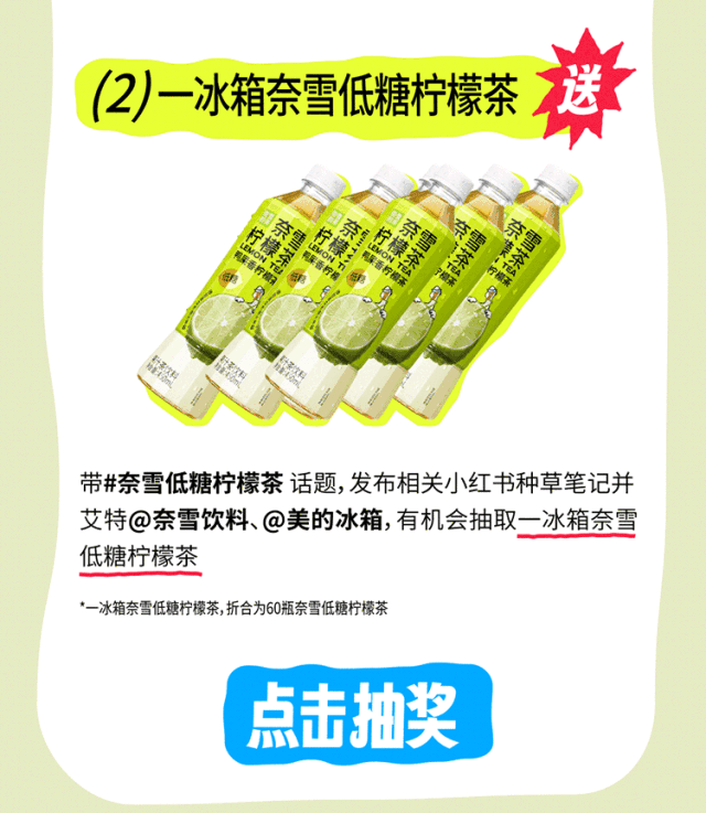 送!美的冰箱 + 一冰箱奈雪柠檬茶!