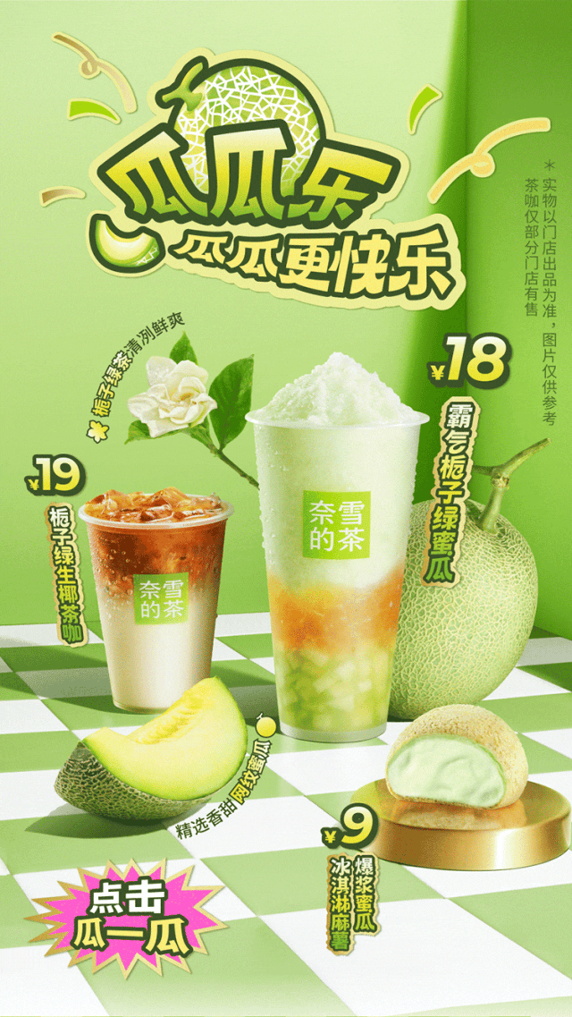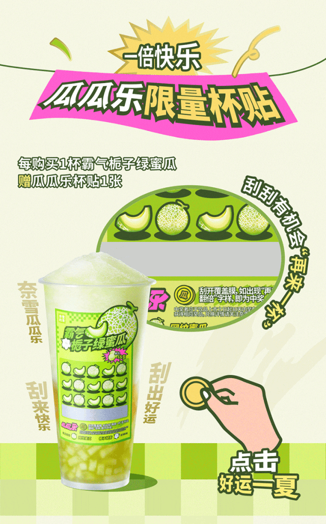 *每购买1杯霸气栀子绿蜜瓜,赠瓜瓜乐杯贴1张