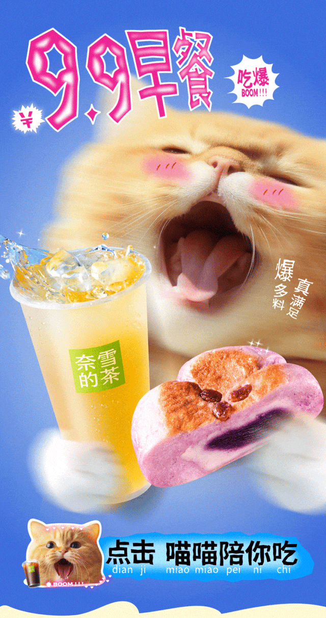 早起上班很烦躁 不吃早餐要疯掉 早餐套餐大爆料 香软馅足炫到饱 BOOM!! BOOM!! 9.9早餐吃爆 心情爆好,上班不恼!香包够爆 馅足双料 爆款!紫薯芋泥双料包 反复按摩、敲打、揉搓 经漫长时间发酵 练就柔弹软乎的外皮 内馅紫薯配芋泥 满满双料厚到爆 咬一口,经典CP的灵魂甜糯 在舌尖爆发,心动到尖叫 新款!蛋黄芋泥双料包 金枕头般弹软,气孔会呼吸 吐露无法抗拒的麦香与黄油香 咸蛋黄蓉与芋泥拥抱 咸香包裹齿尖,激发食欲 糯香微甜,幸福感十足 好茶靓咖 精神不差 金奖!奈雪茉莉初雪 上班放轻松,饮茶再开工 茉莉香沁入心脾 茶汤如初雪般清冽沁润 经典!美式咖啡 美式一杯,快乐起飞 口感醇厚温和,尾韵微甘 滑入喉间,似有沁爽清风吹过 BOOM!! BOOM!! 9.9元早餐吃爆 小程序点单 紫薯芋泥双料包+茉莉初雪 12.9元早餐新品 小程序点单 蛋黄芋泥双料包+美式咖啡 早餐家族 花样搭配 厚切岩烧乳酪吐司——酪香十足,厚实丰满 蔓越莓贝果——柔弹劲道,酸甜交织 火腿芝士贝果——咸香爆发,口口过瘾 肠仔包——蓬松柔软,肉肠爆汁 限定杯贴 购奈雪早餐套餐,赠可爱杯贴 *款式随机,数量有限,赠完即止,限奈雪茉莉初雪、美式咖啡、拿铁咖啡三款饮品可用
