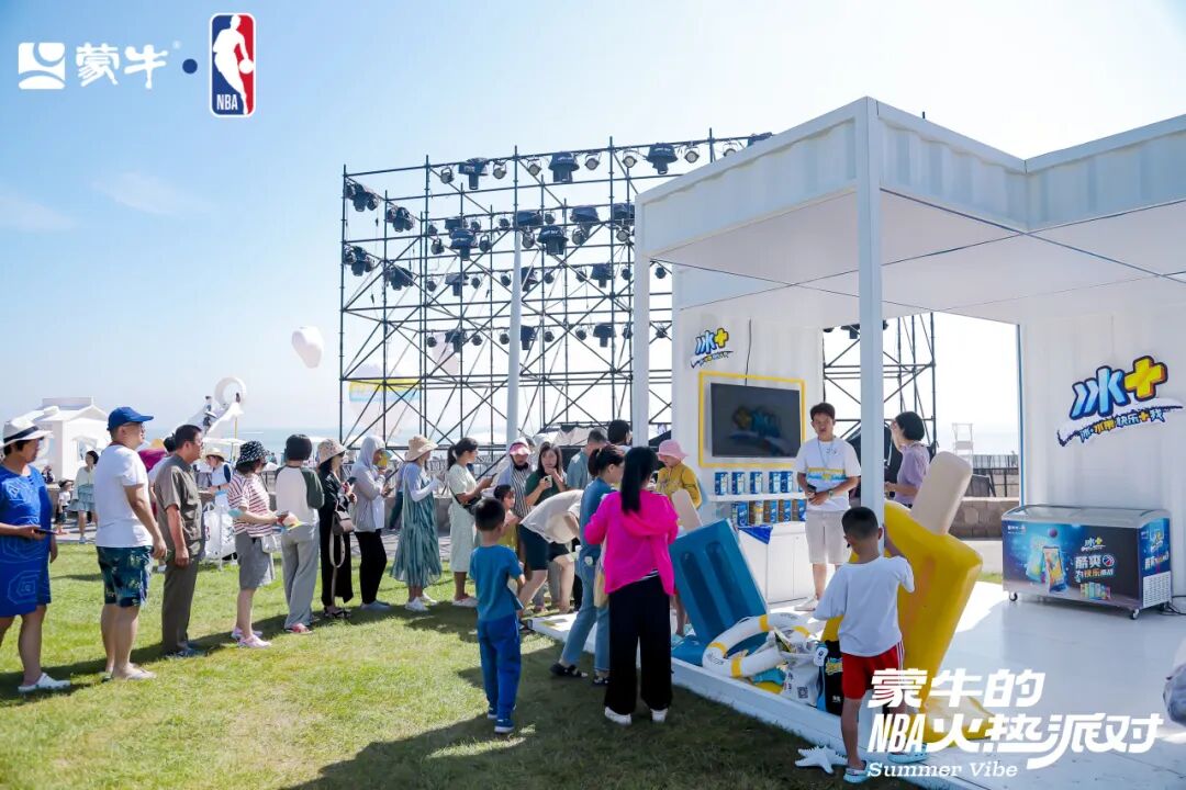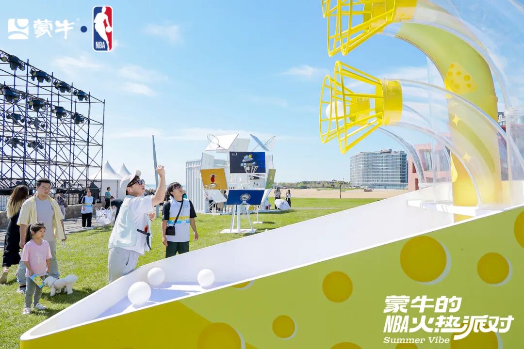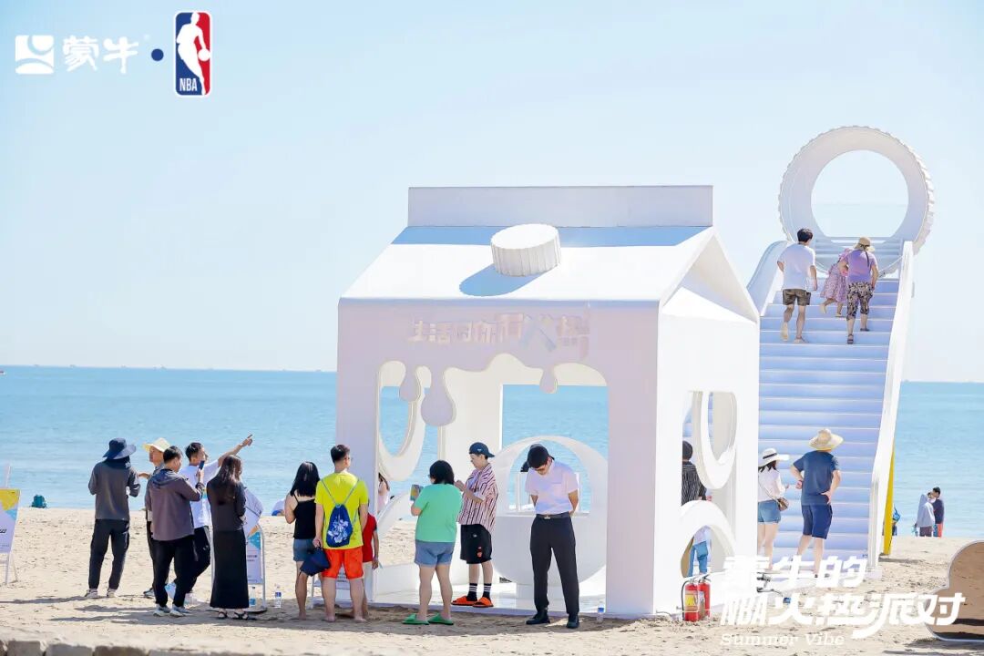 火热派对为消费者准备了丰富的打卡场景,品牌角色深入贯彻在活动的各个环节中。现场设置了冠军天梯、巨型奶盒、冰感碗池等装置,消费者可沉浸式打卡阿那亚的美景,感受浪漫气息与篮球激情的交融。