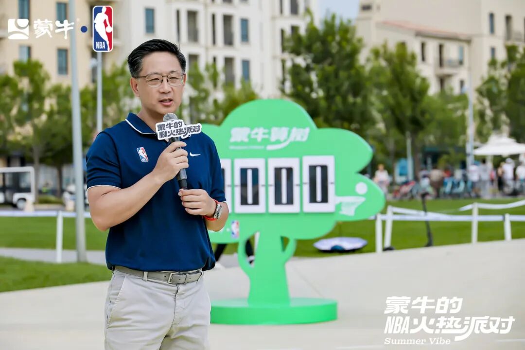 在活动现场,蒙牛算“树”环保公益项目也正式发布。蒙牛集团党委副书记、执行总裁、蒙牛公益基金会理事长李鹏程介绍了蒙牛在生态环境保护领域的工作,篮球活动上的进球将由蒙牛转化为乌兰布和沙漠中的树木。在发布会上,NBA中国全球合作伙伴副总裁杨晓刚介绍了NBA如何践行公益环保。未来,NBA将联合蒙牛捐建篮球场并合作开展公益篮球活动,助力孩子们的篮球梦想。