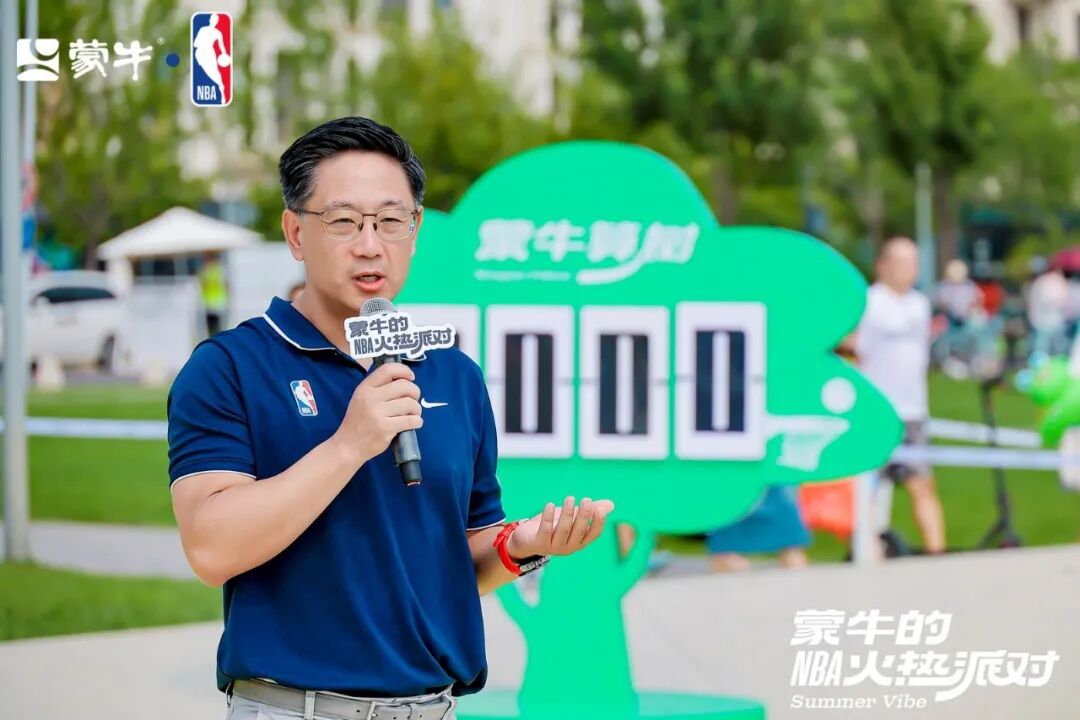 NBA中国全球合作伙伴副总裁杨晓刚介绍了NBA如何践行公益环保,并积极通过以“NBA关怀行动”命名的企业社会责任计划,以实际行动回馈社会,NBA将联合蒙牛捐建篮球场并合作开展公益篮球活动,助力孩子们的篮球梦想。篮球活动上的进球将由蒙牛转化为乌兰布和沙漠中的树木。