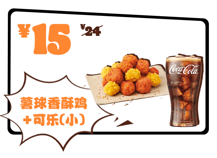 果木风味鸡腿堡 1个;脆鸡堡 1个;薯球香酥鸡 1份;王道嫩香鸡块 5块;薯霸王(中) 1份;酷黑巧心派 1个;荔枝桃桃派 1个,霸王鸡条 6条,可口可乐无糖(中)/可口可乐(中) 1杯,白桃乌龙茶 1杯